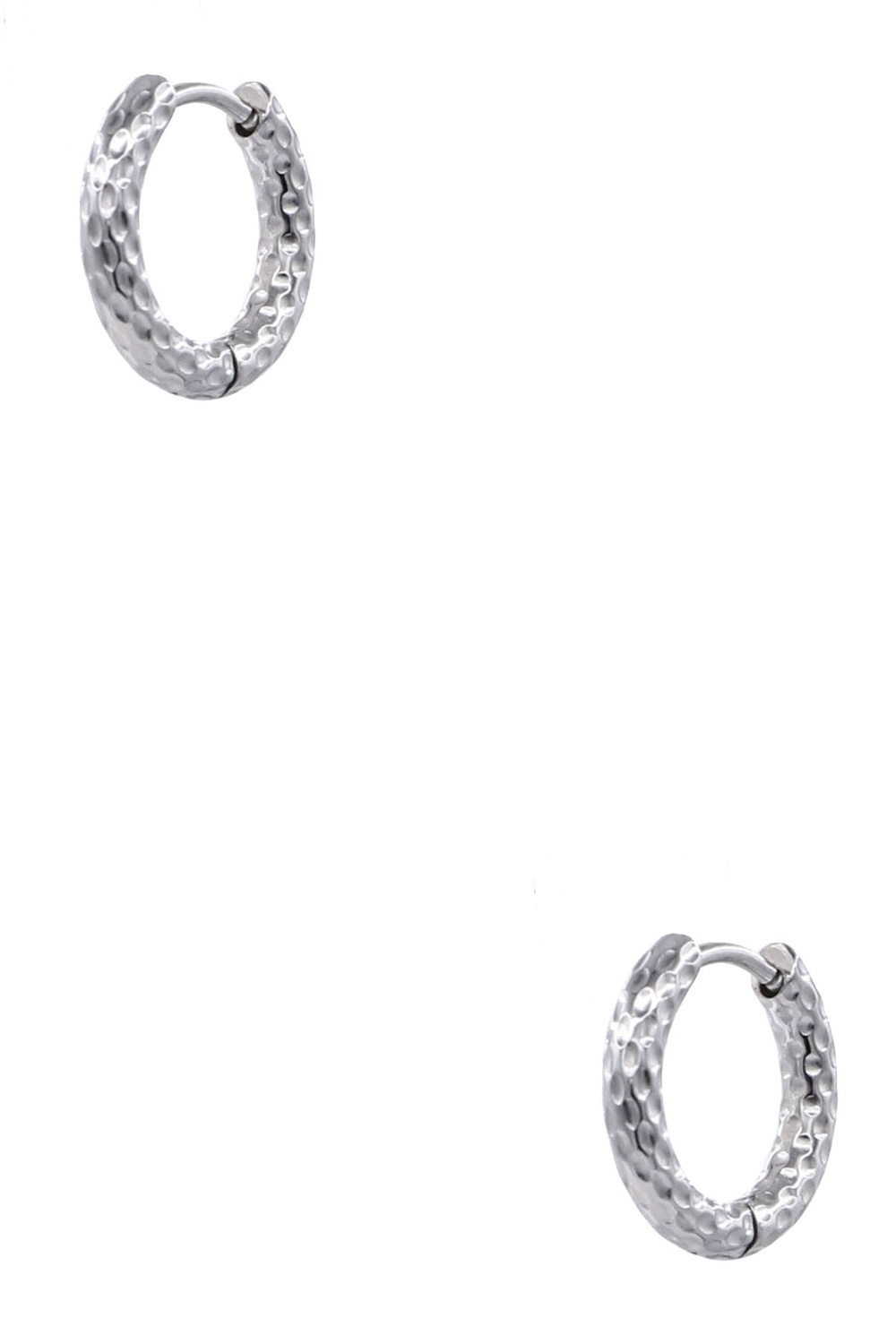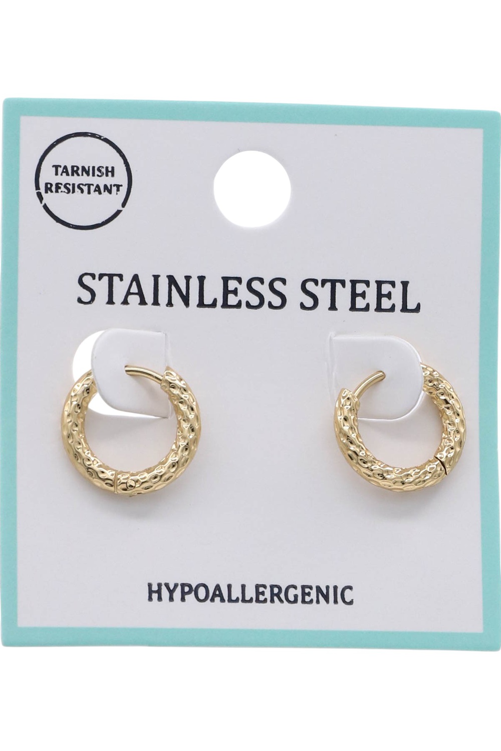 • Sleek stainless steel huggie hoops with a subtle textured finish. Durable, lightweight, and perfect for adding modern edge to everyday style