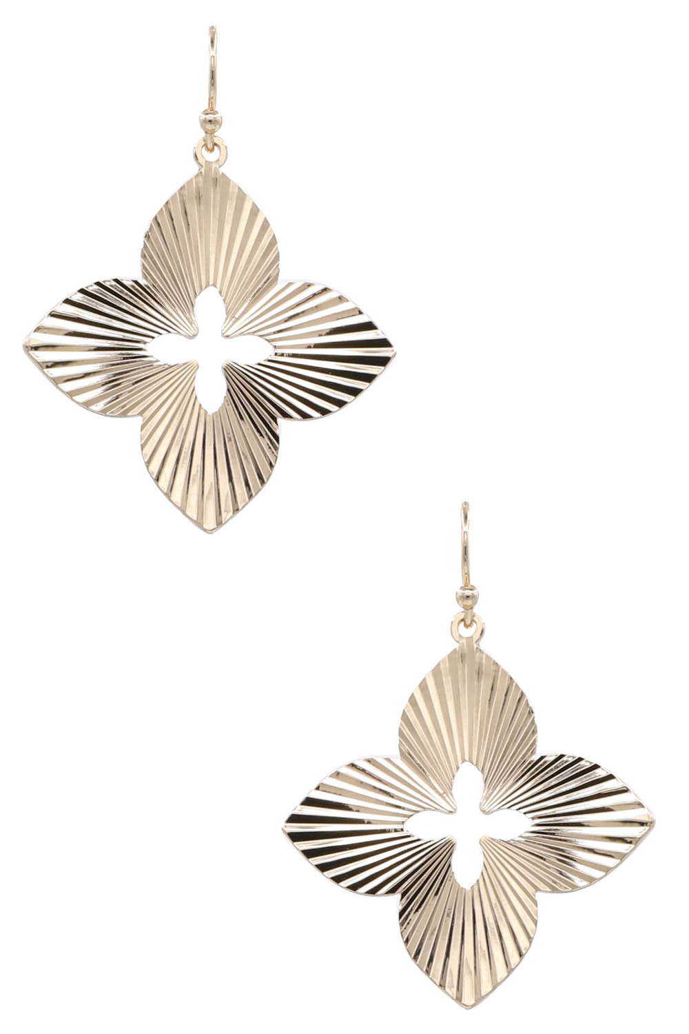 - Metal quatrefoil textured dangle earrings