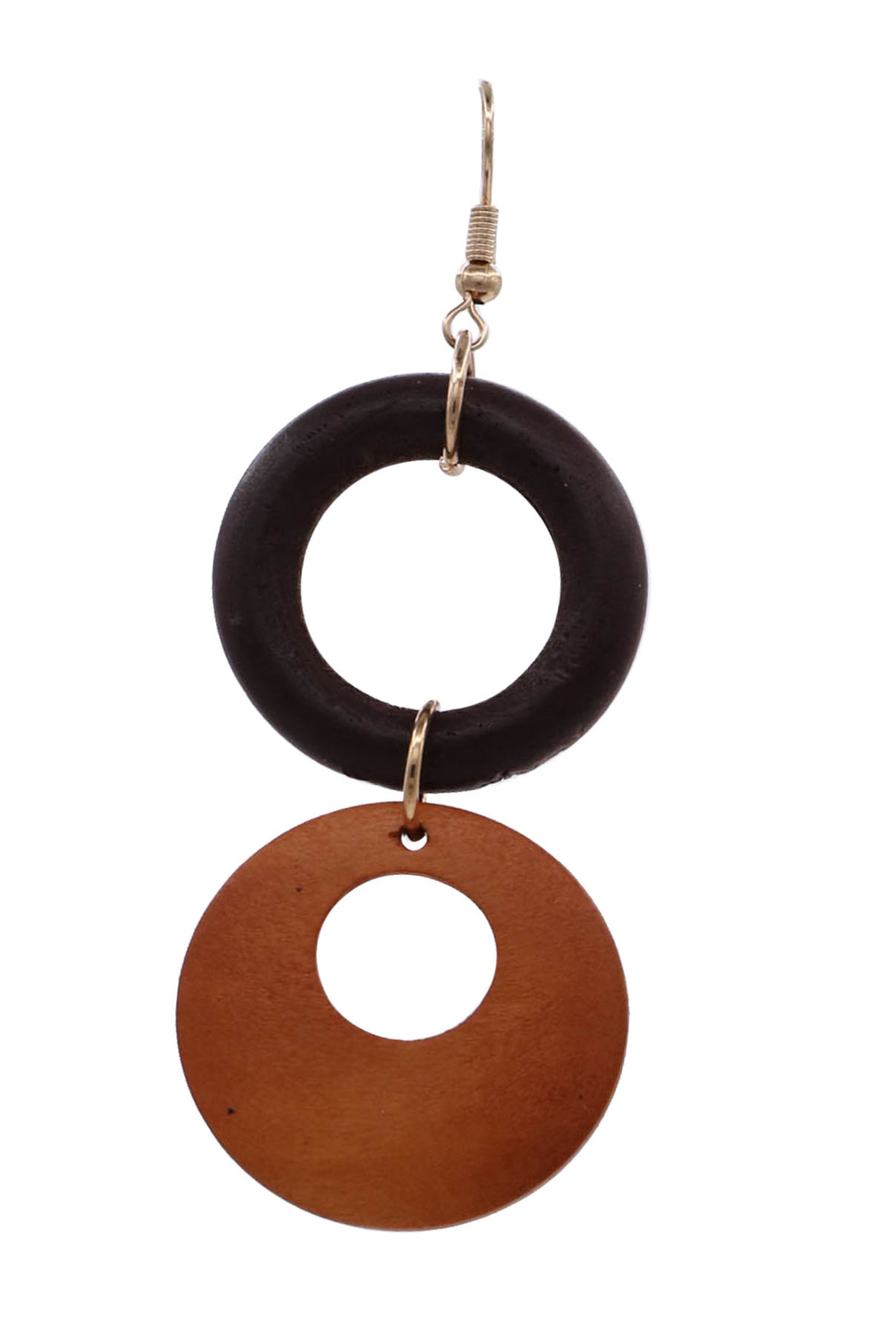 - These earthy yet colorful oval wood drops mix natural tones with a modern silhouette. A chic way to bring warmth and color to your look.