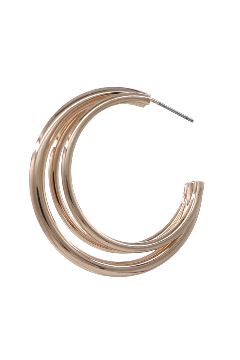 - Elegant hoop earrings with a three-line metal structure that blends simplicity with sophistication. Plated brass