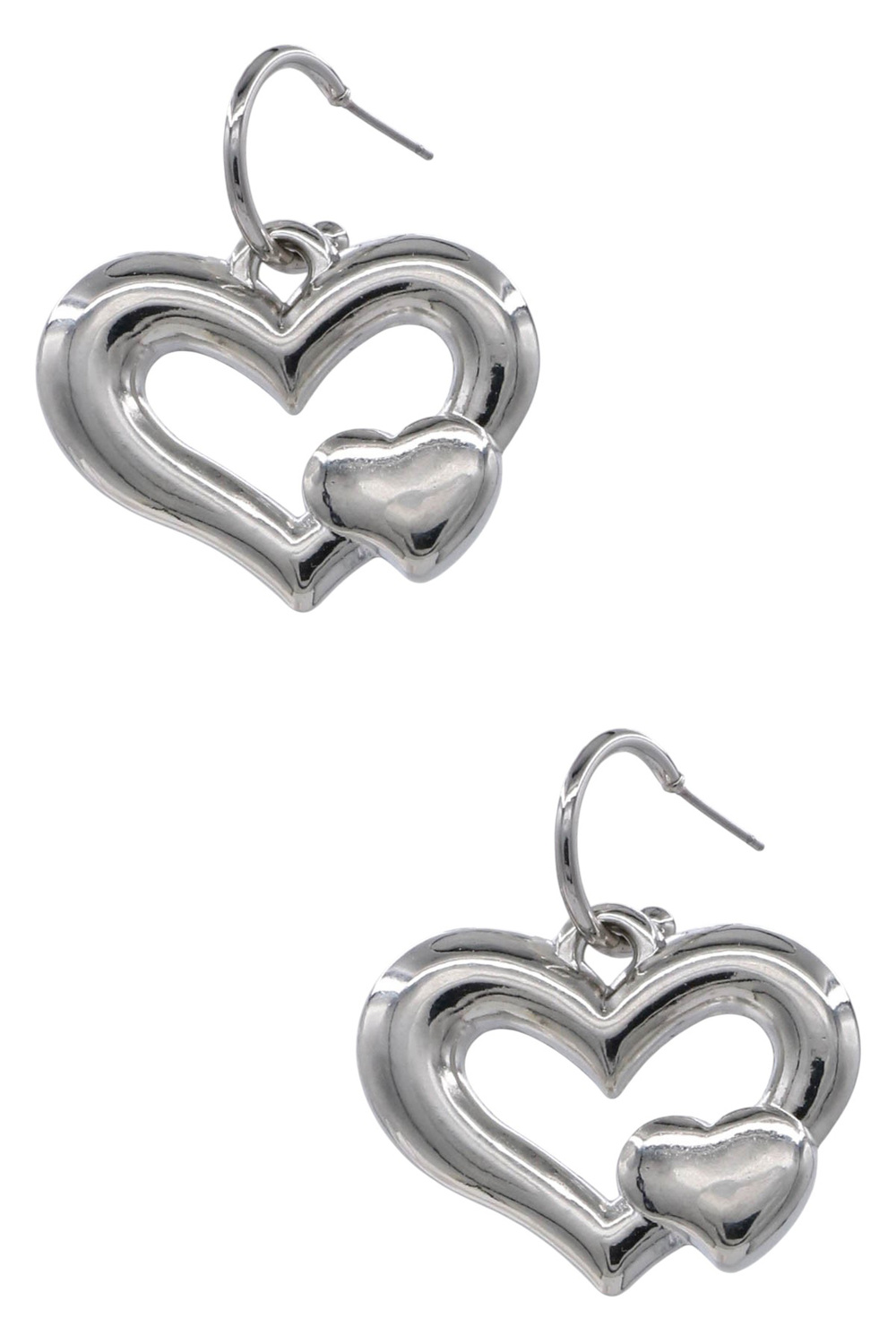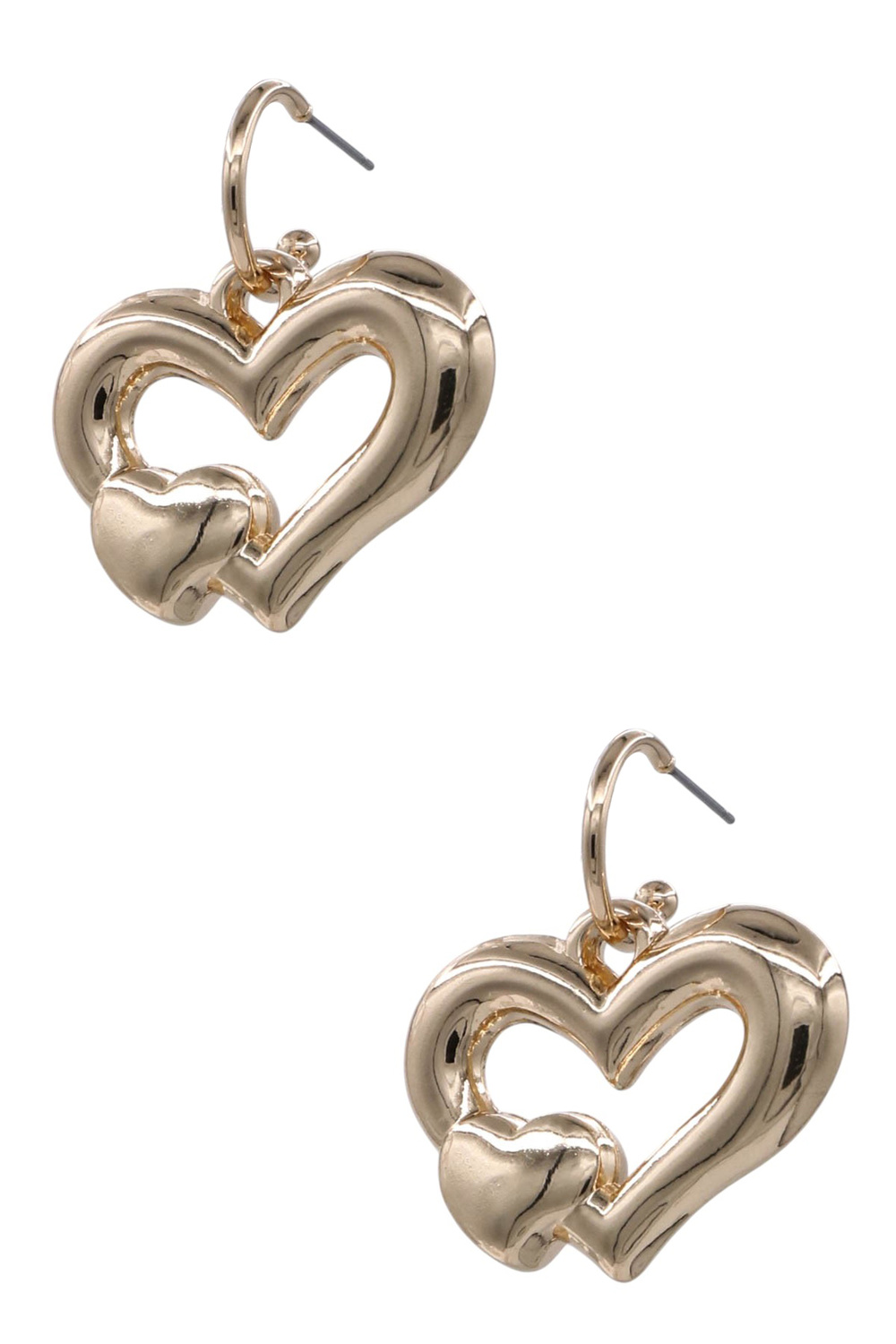 - Charming and trendy, these metal huggie earrings are finished with puffy heart details for a playful yet chic look. Great for casual or layered styling.