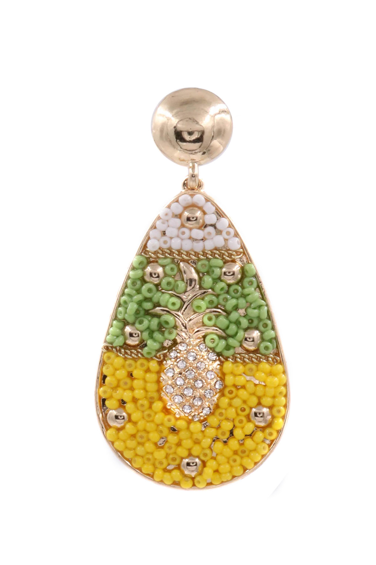 - Seed bead/rhinestone metal pineapple teardrop earrings