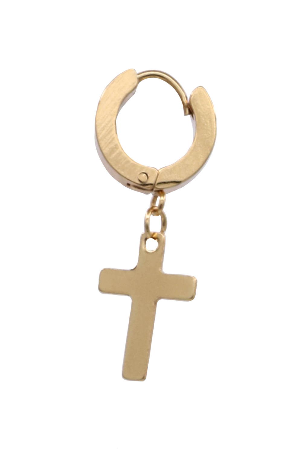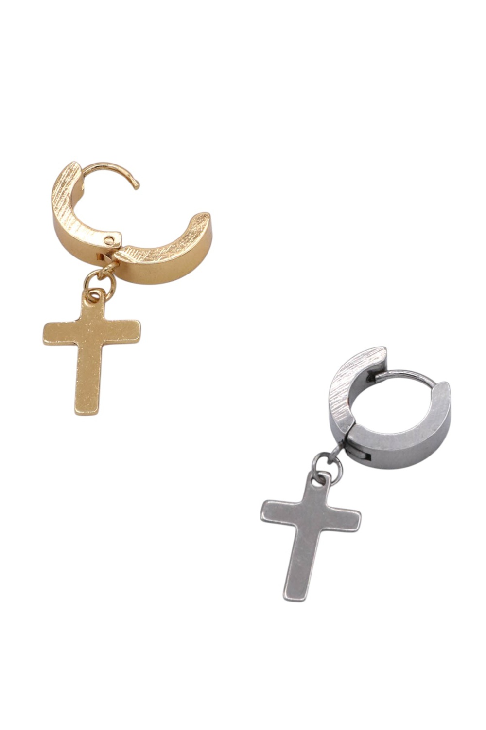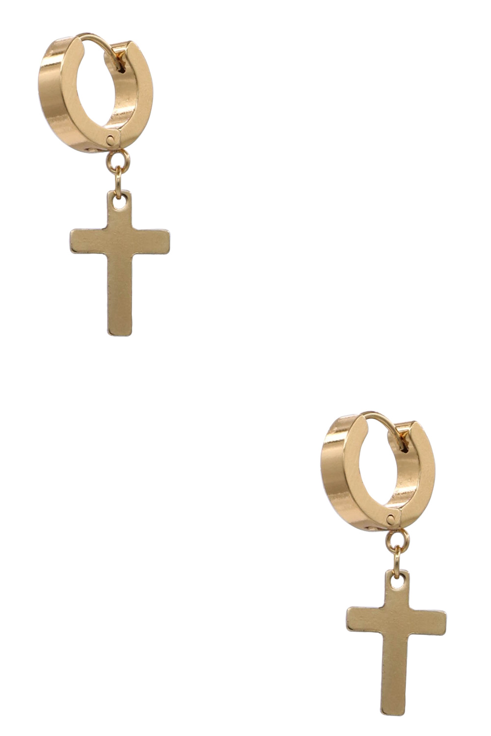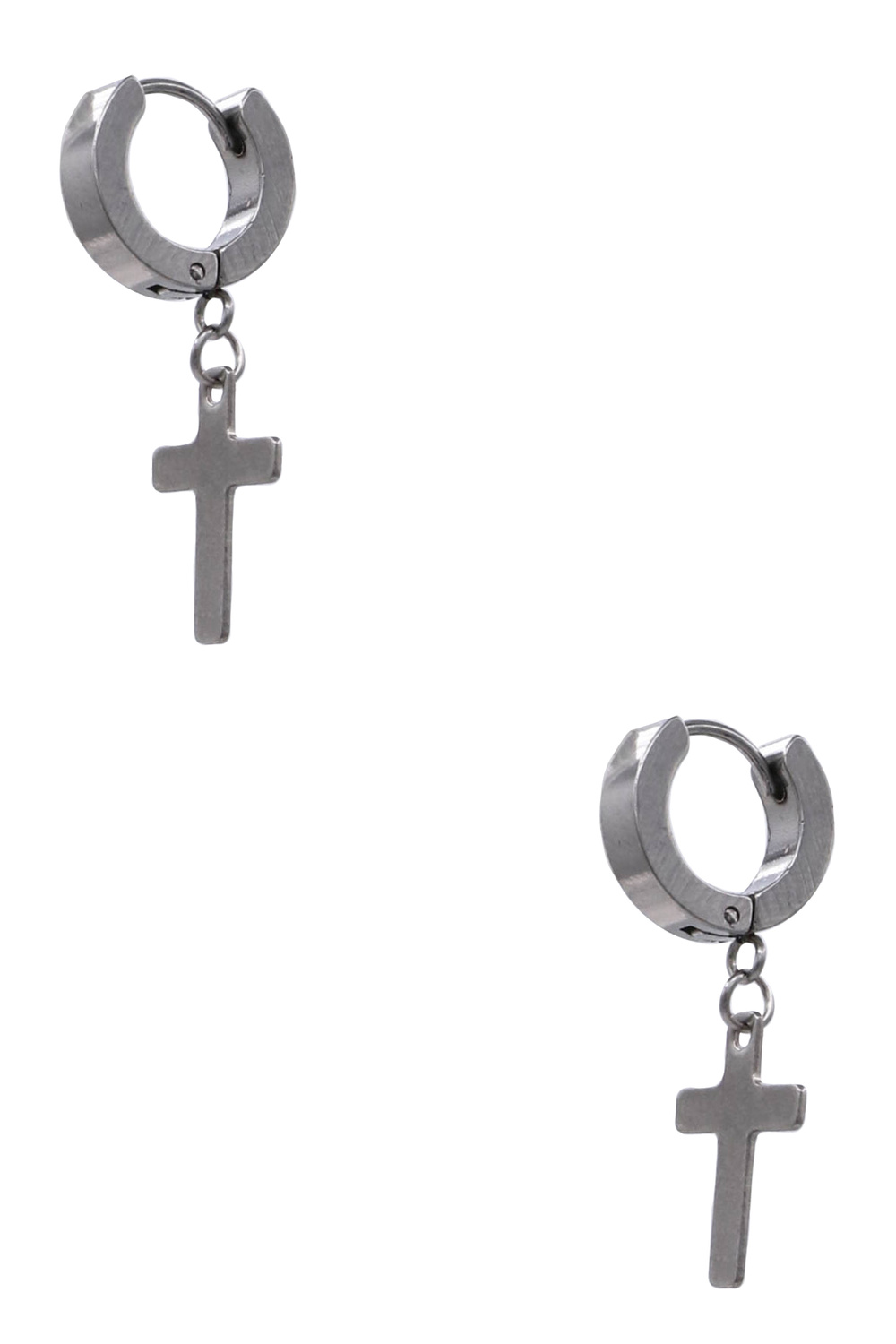 - Sleek hoop earrings crafted from durable stainless steel, each featuring a classic cross charm. Lightweight and versatile, they add a modern, faith-inspired touch to everyday or dressy outfits.