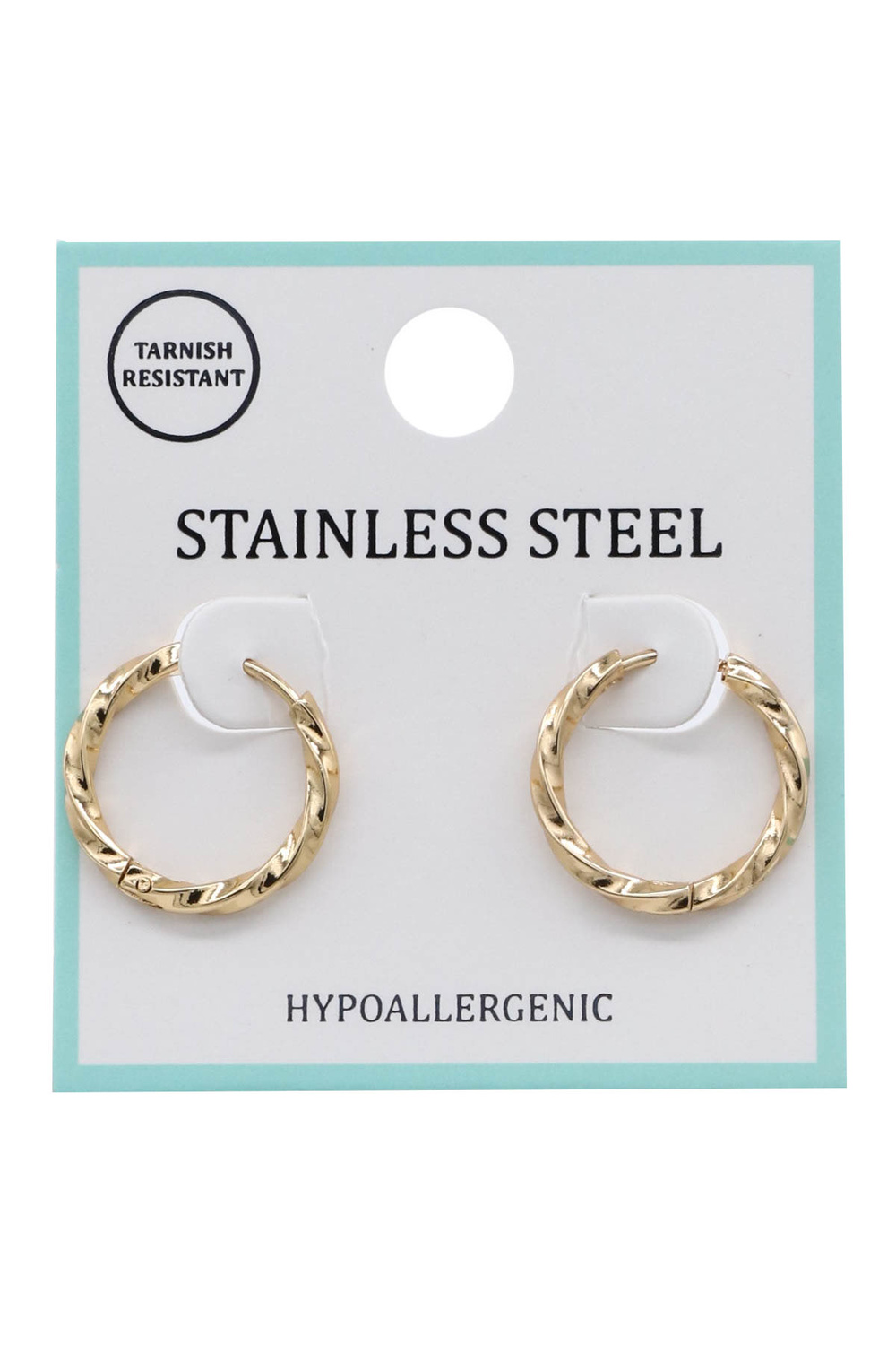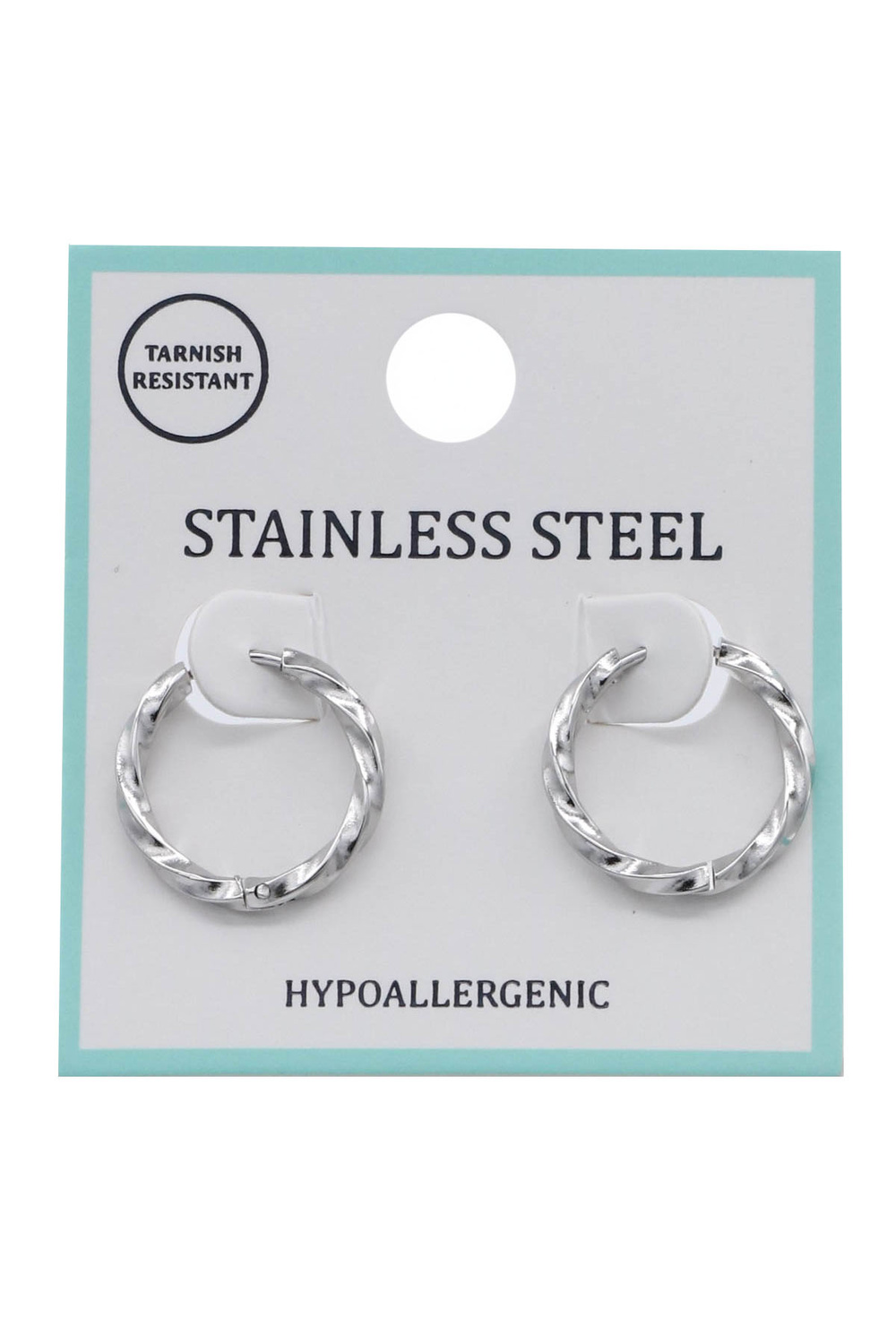 - Sleek and modern huggie hoop earrings featuring a twisted stainless steel design. Perfect for everyday elegance and timeless style.