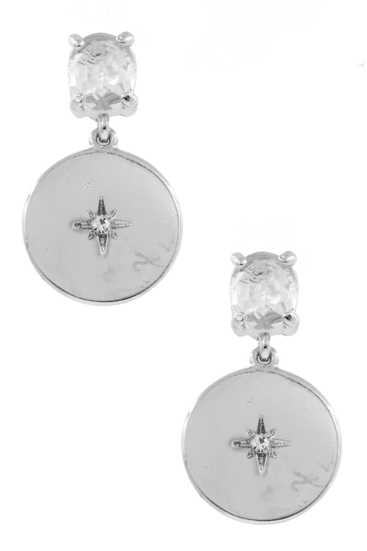 - Metal star rhinestone disc drop earrings