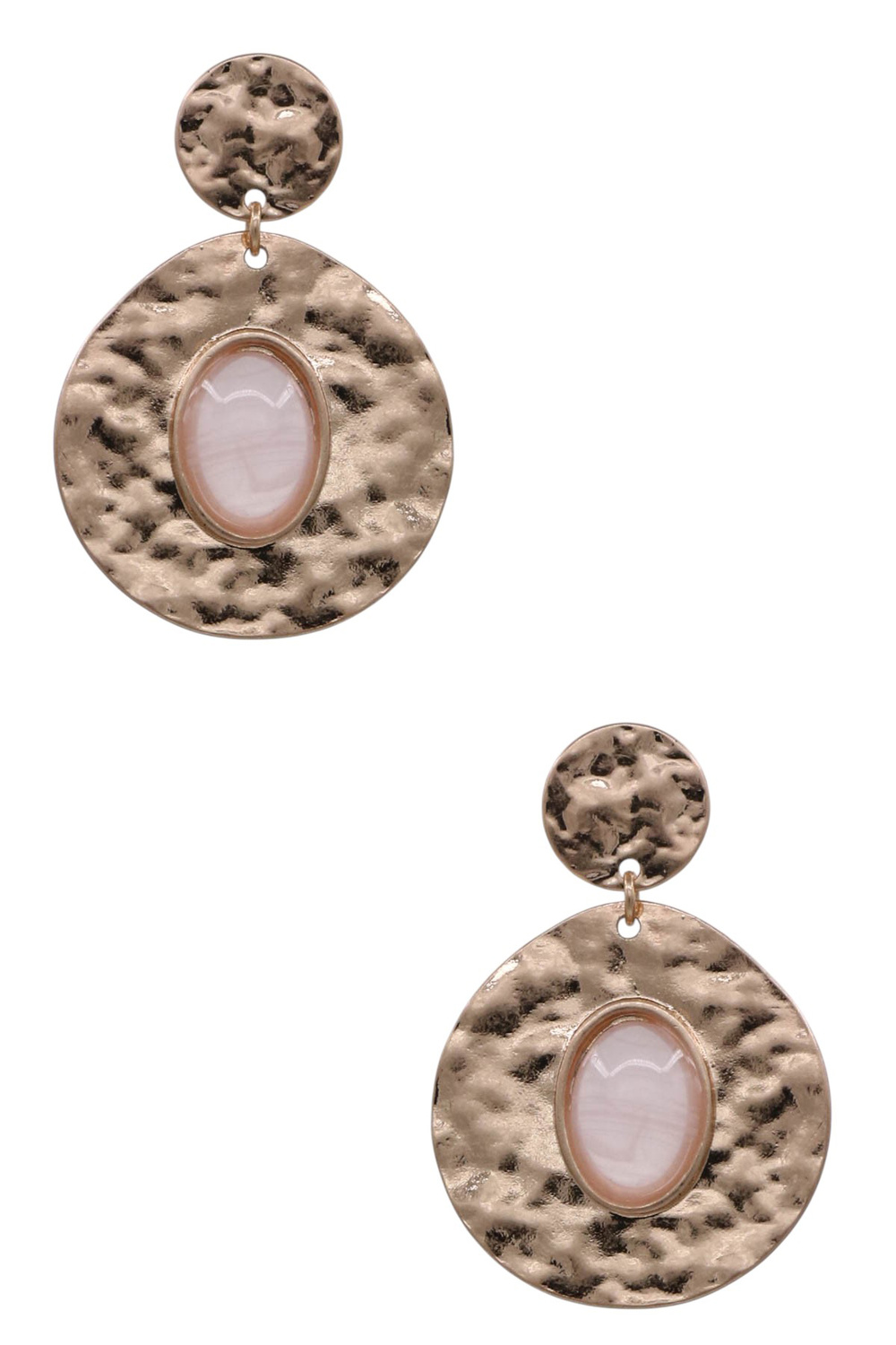 - Chic drop earrings designed with hammered acrylic stone details that add texture and shine. Lightweight and perfect for everyday or dressy wear.