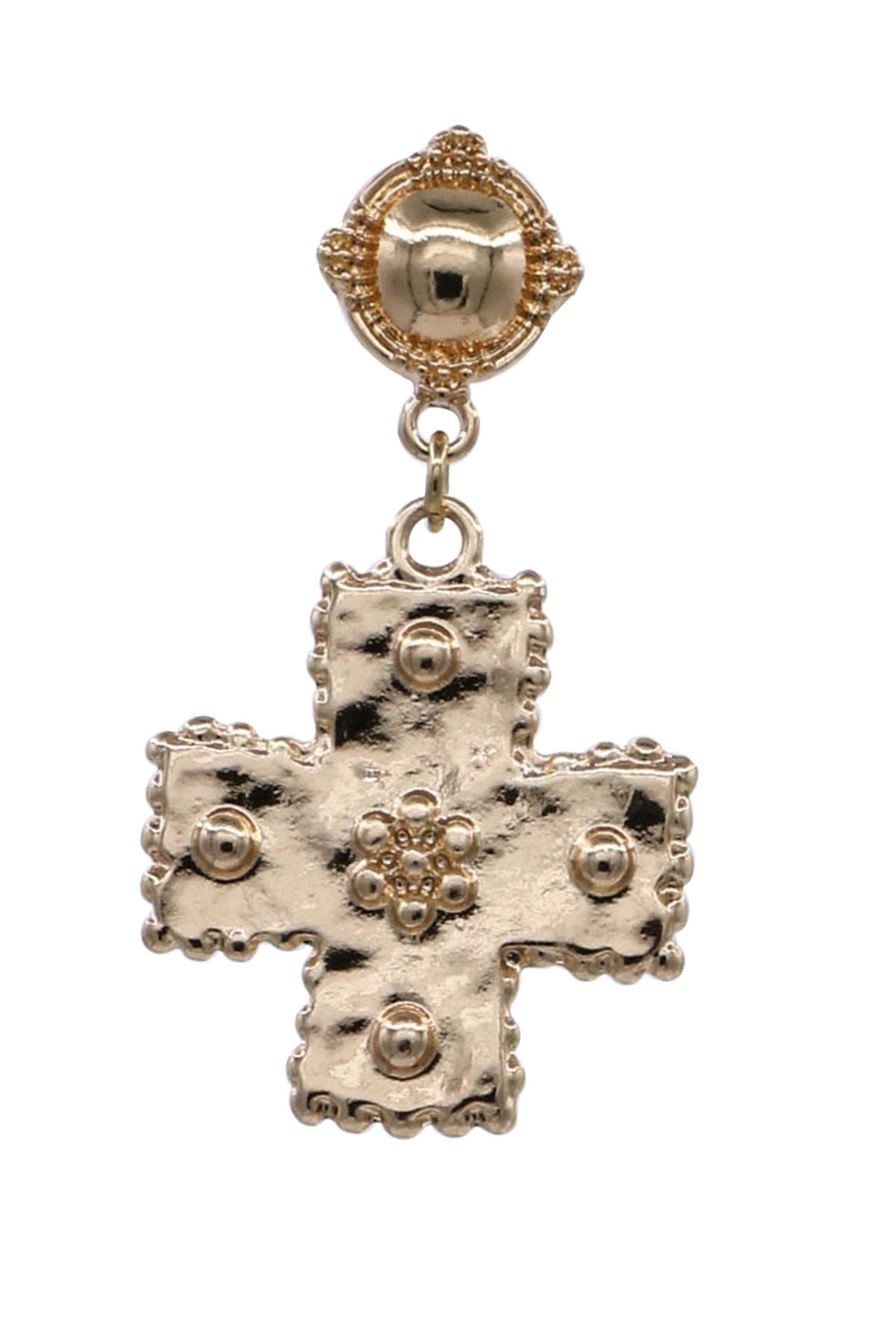 - Chic metal earrings with a hammered cross design for a handcrafted look. Ideal for everyday wear