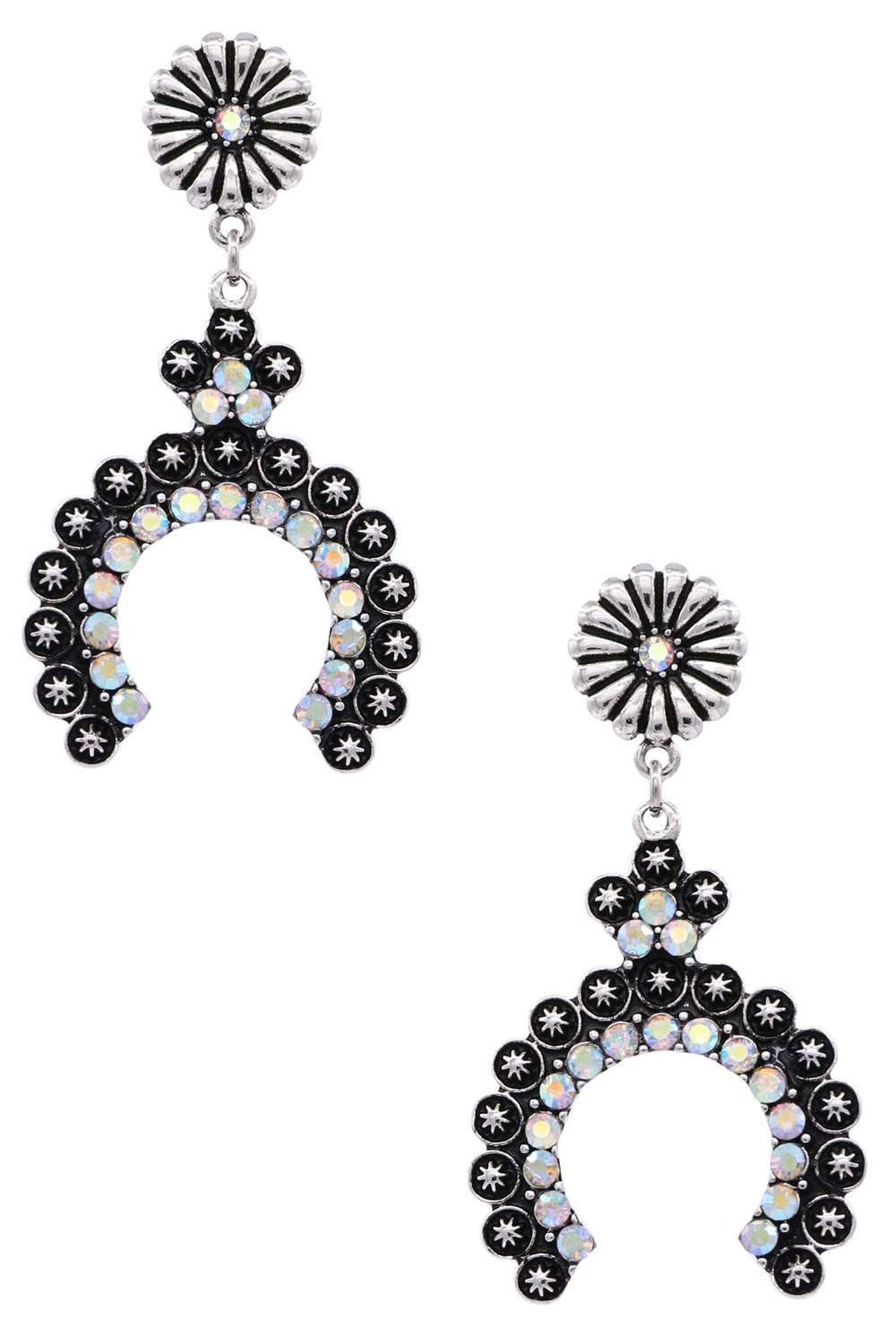 - Classic squash blossom silhouettes meet shimmering AB stones, creating a statement earring that blends Southwestern tradition with modern sparkle.