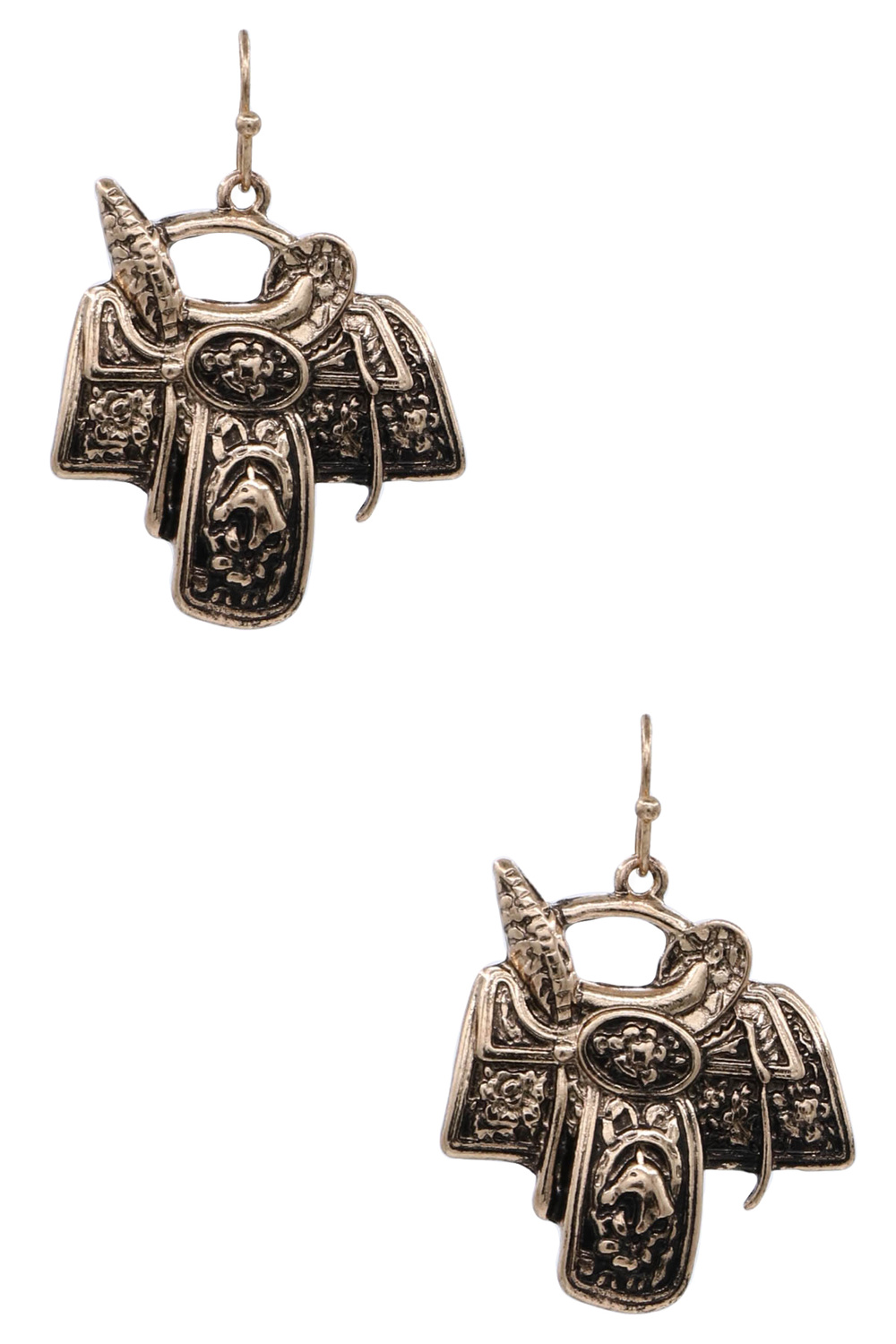 - Western saddle-shaped drop earrings. Trendy, lightweight, and perfect for casual, western, or themed outfits