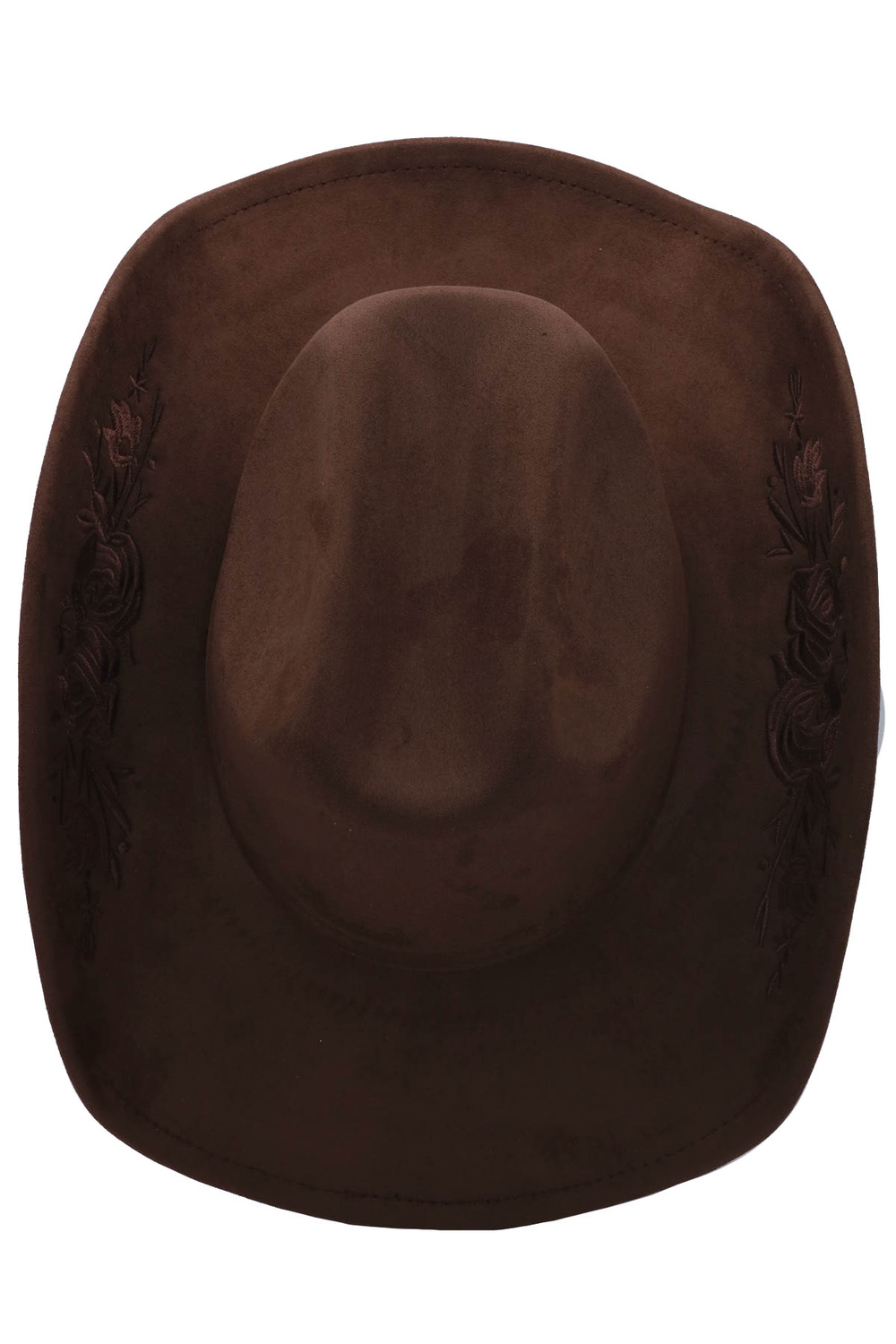 - Crafted with rich faux suede, this Embroidered Wild Rose Cowboy Hat showcases intricate rose embroidery for a timeless, handcrafted look.