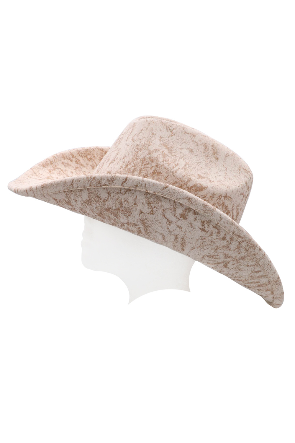 - Vintage-style microsuede cowboy hat with a sand wash finish and buckle-accented band. Perfect for western or casual styling.