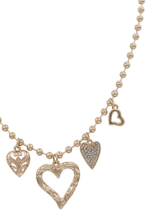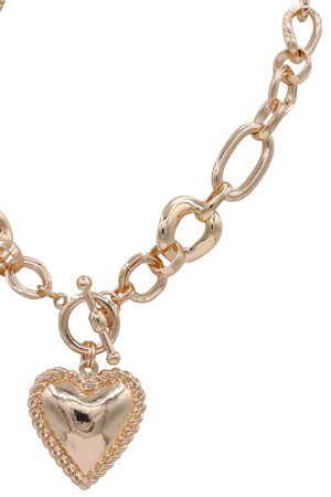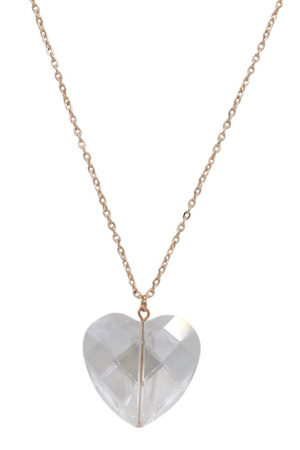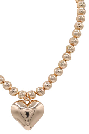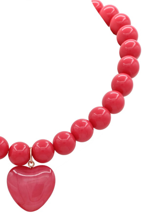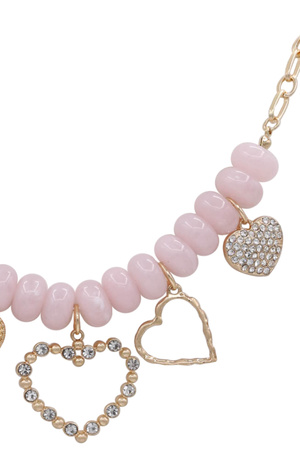 Heart Charm Metal Chain Acrylic Bead Necklace