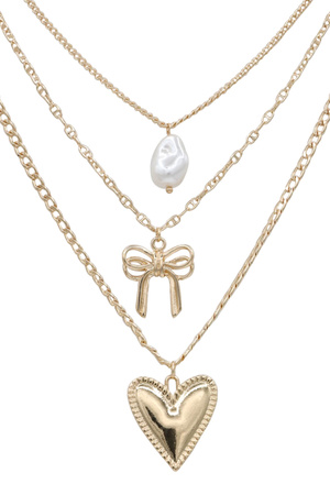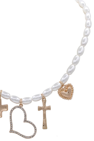 Cream Pearl Ball Linked Heart Pendant Necklace