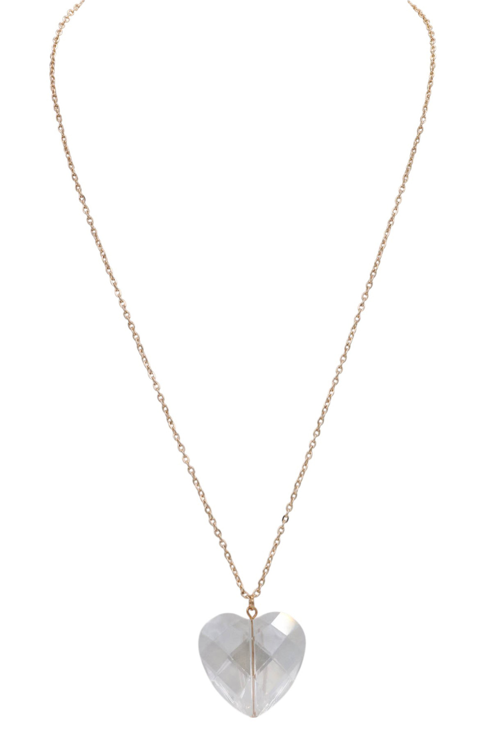 • This exquisite heart pendant necklace embodies timeless romance and sophisticated charm. Crafted with a delicate gold-tone chain, it suspends a breathtaking faceted Acrylic heart. The geometric facets of the heart add a contemporary edge to its classic shape, ensuring it feels both modern and timeless. This necklace is a celebration of love in all its forms, a radiant expression of joy and connection.