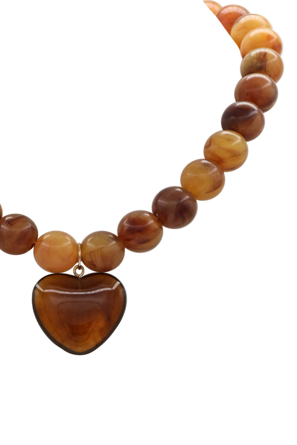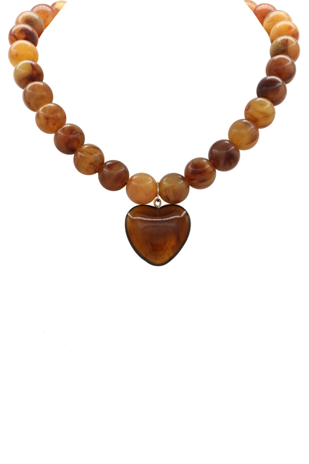 - A delicate heart pendant shines among polished acrylic beads, creating a necklace that blends classic elegance with modern simplicity.