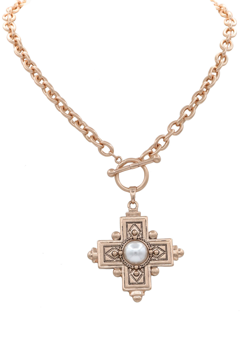 - This artisan-inspired necklace features a beautifully detailed cross pendant and a classic toggle closure.
