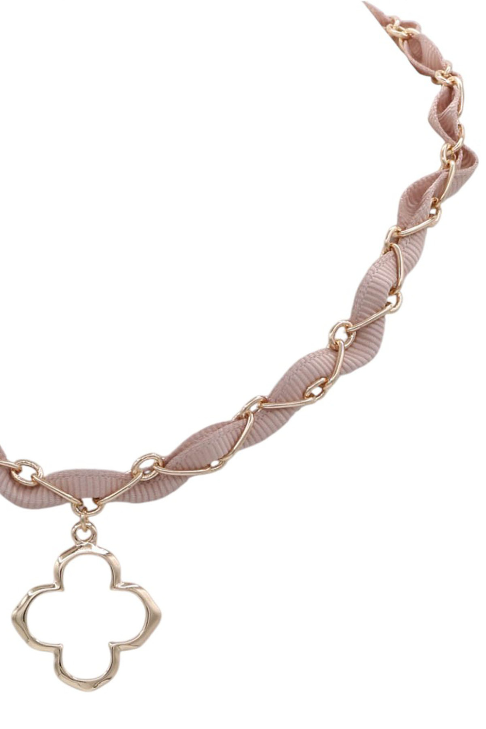 - Fabric necklace featuring a clover pendant. Lightweight and stylish-perfect for everyday wear or a touch of luck.