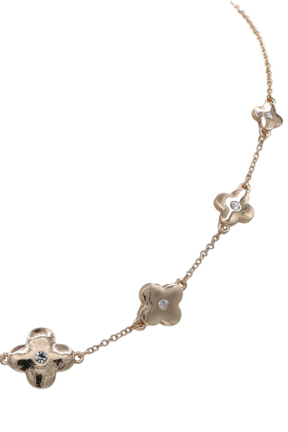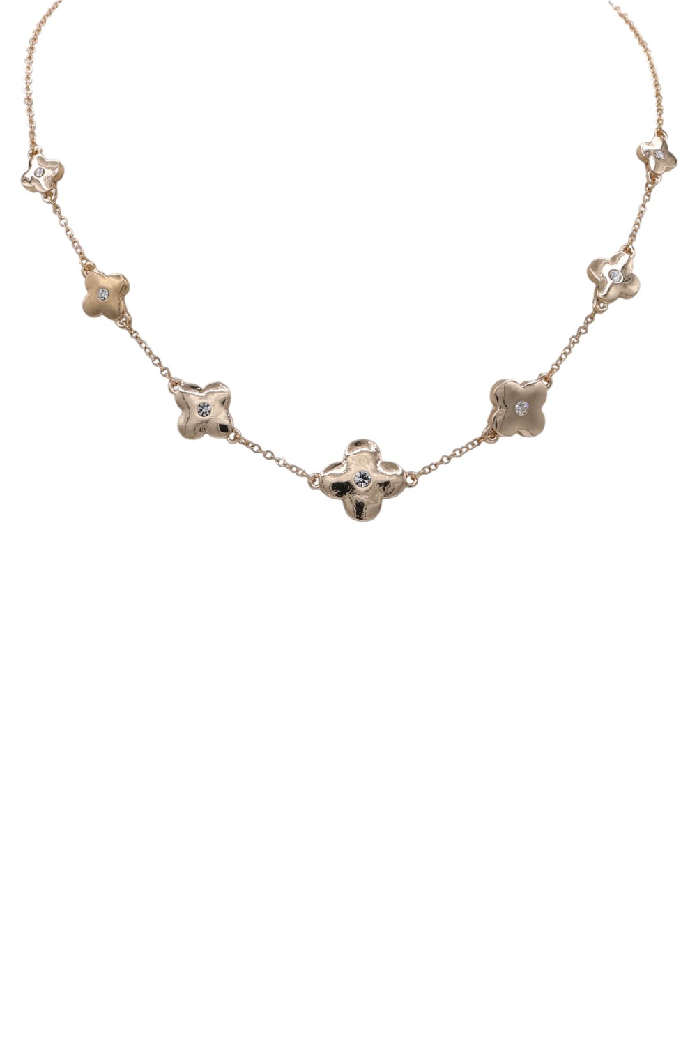 - Metal station necklace featuring dainty clover pendants. A chic and timeless piece for everyday wear.