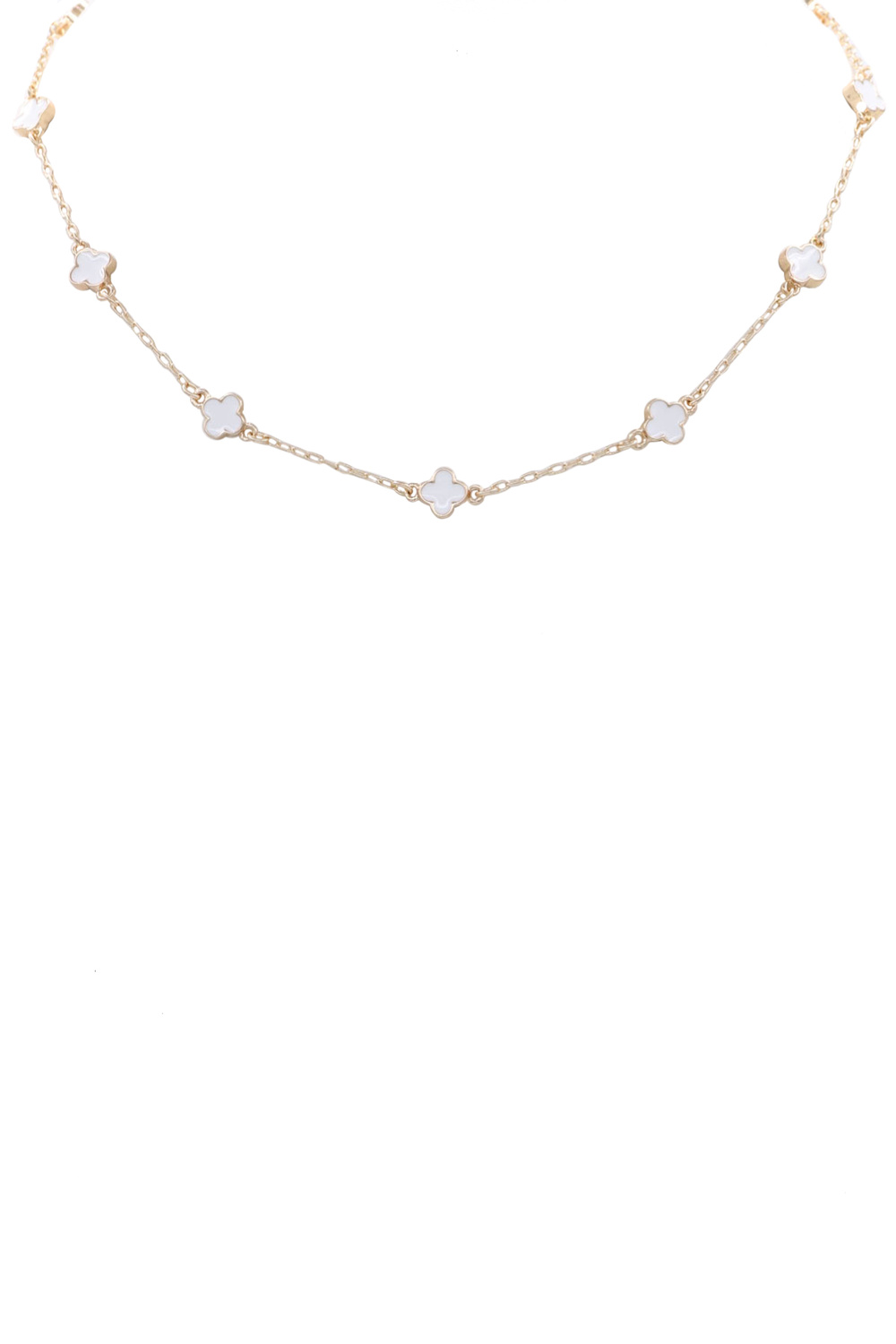 - Metal epoxy quatrefoil station necklace