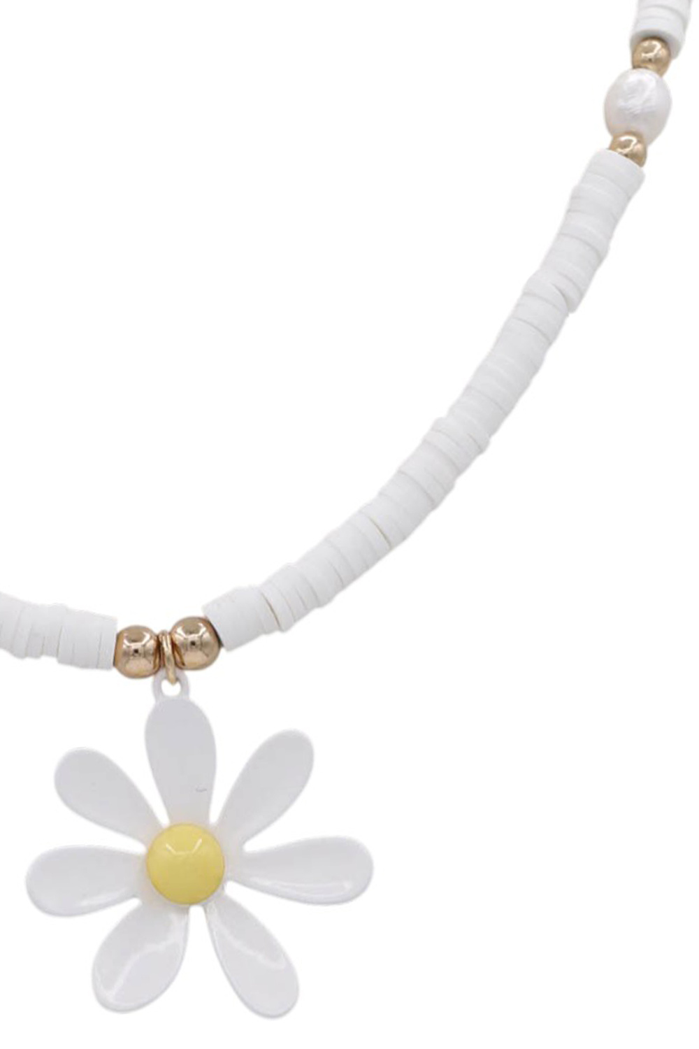 - This charming daisy pendant necklace is the epitome of playful elegance, perfect for adding a touch of whimsical flair to any ensemble. Crafted with a delicate strand of white rubber beadsThis necklace is a celebration of simple beauty and a testament to the power of a single, well-chosen accessory to transform an outfit. Its It's a reminder to find joy in the little things and to embrace the beauty of the natural world.