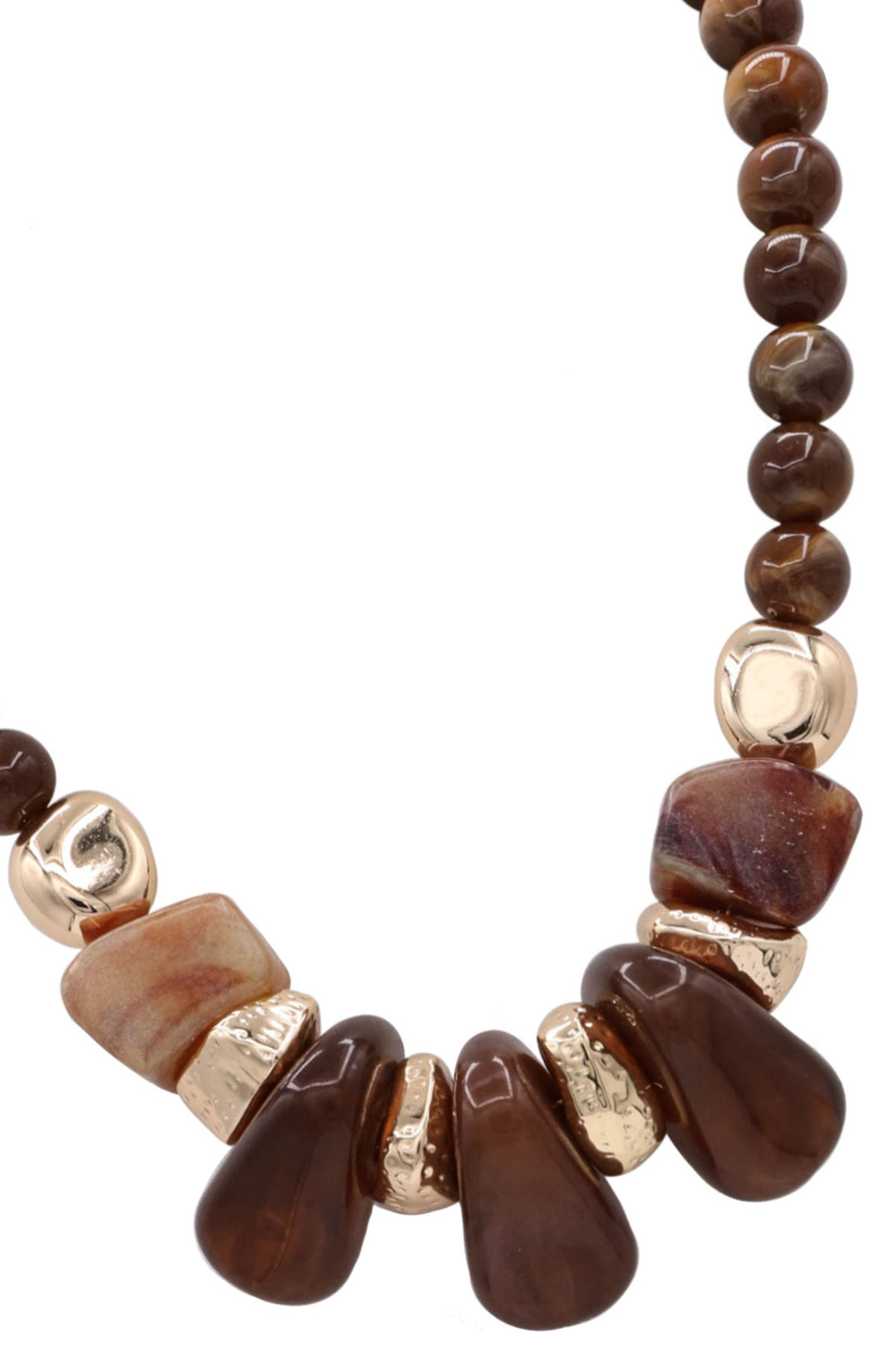 - This chunky necklace combines modern marbled beads with rich gold-dipped touches for a bold, fashion-forward finish. Lightweight, dramatic, and instantly chic.