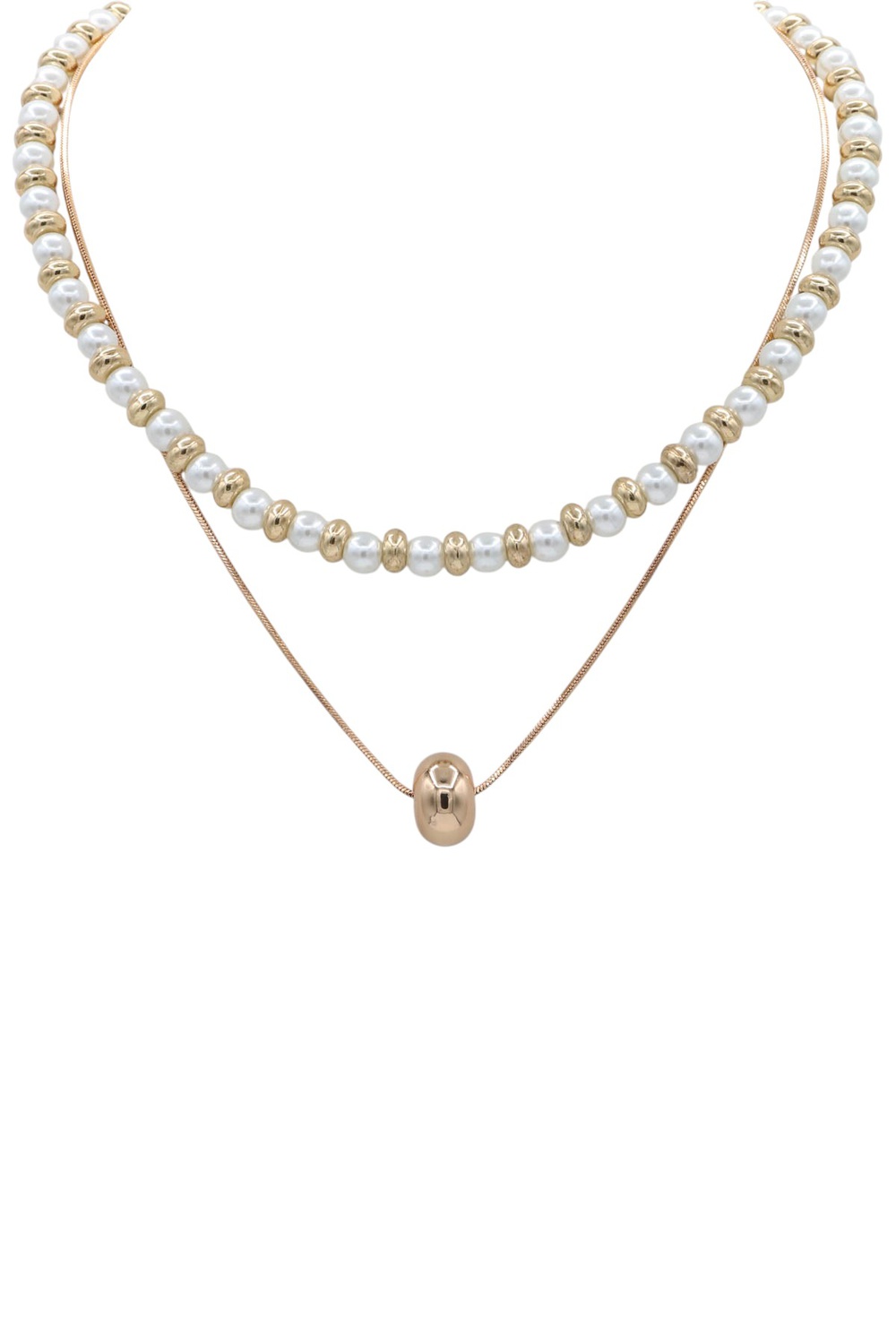 - Beautiful cream pearls drape effortlessly across layered chains, creating a chic and polished statement. Ideal for everyday elegance or special occasions.