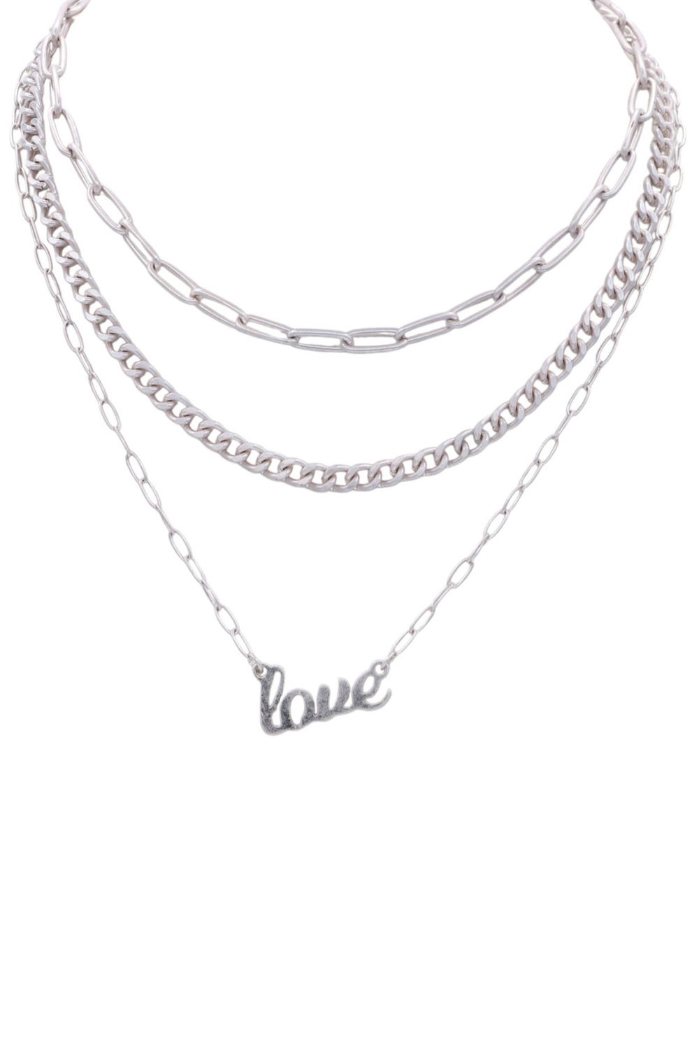 - This 2-piece necklace set includes a polished metal chain and a dainty “LOVE” charm for a stylish, romantic touch. Perfect for everyday wear or pairing with boutique fashion