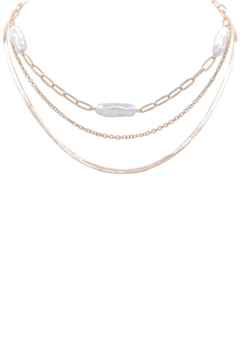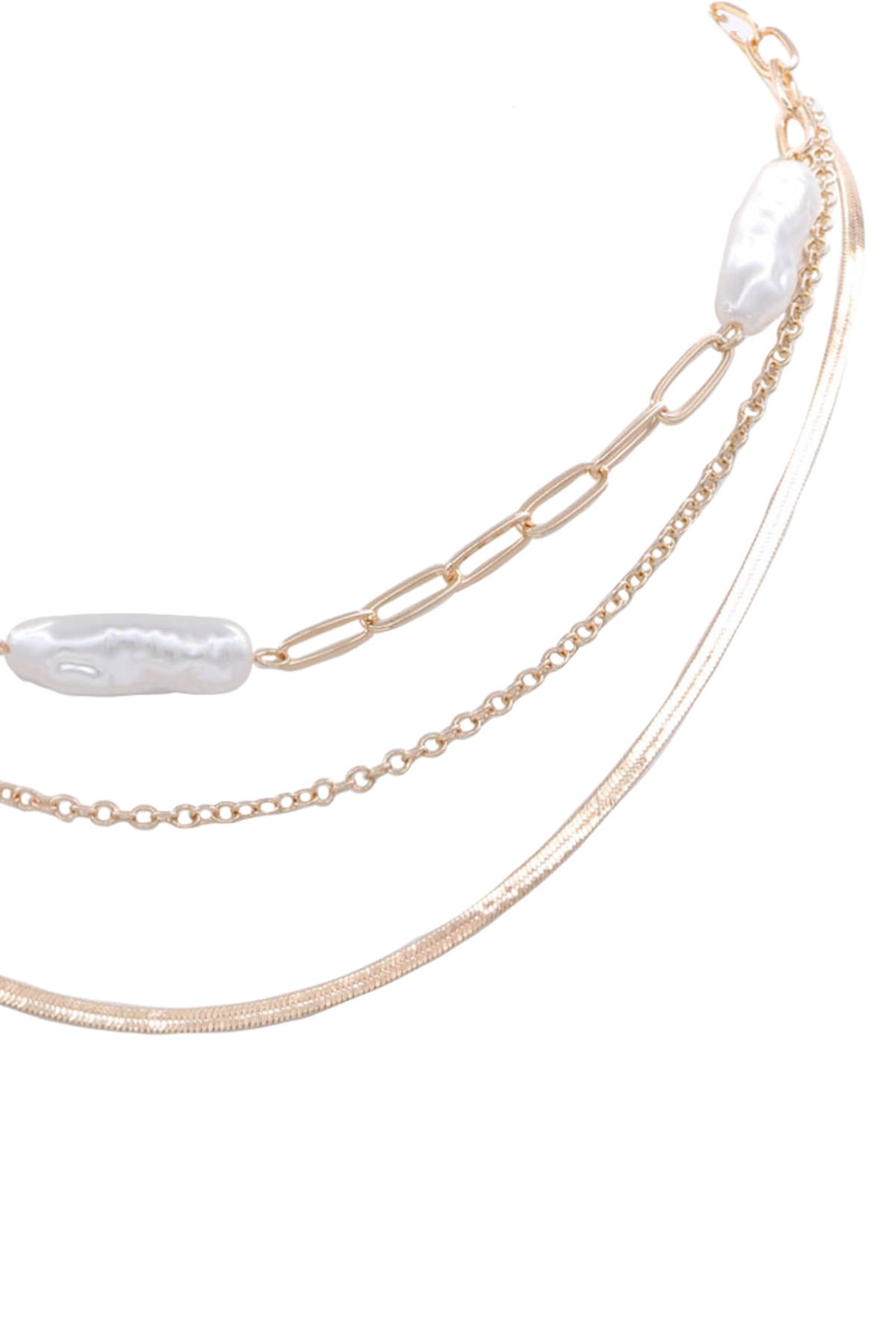 - Metal cream pearl layered chain necklace