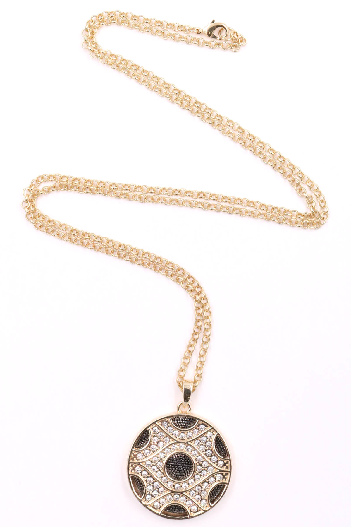 - Pave metal disc pendant necklace