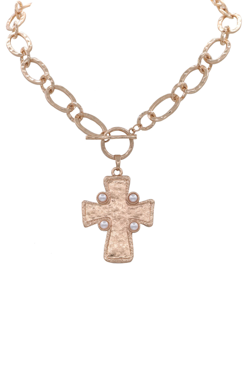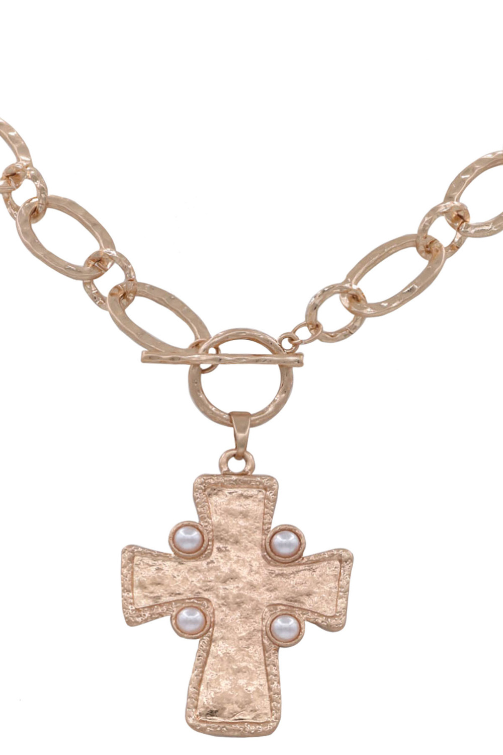 - Metal hammered chain cross pendant necklace