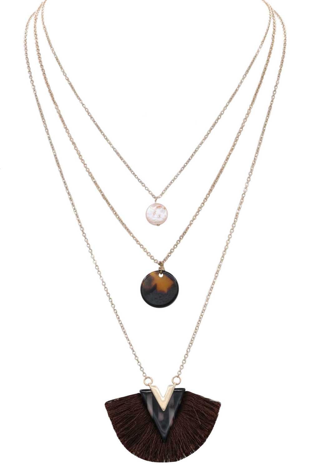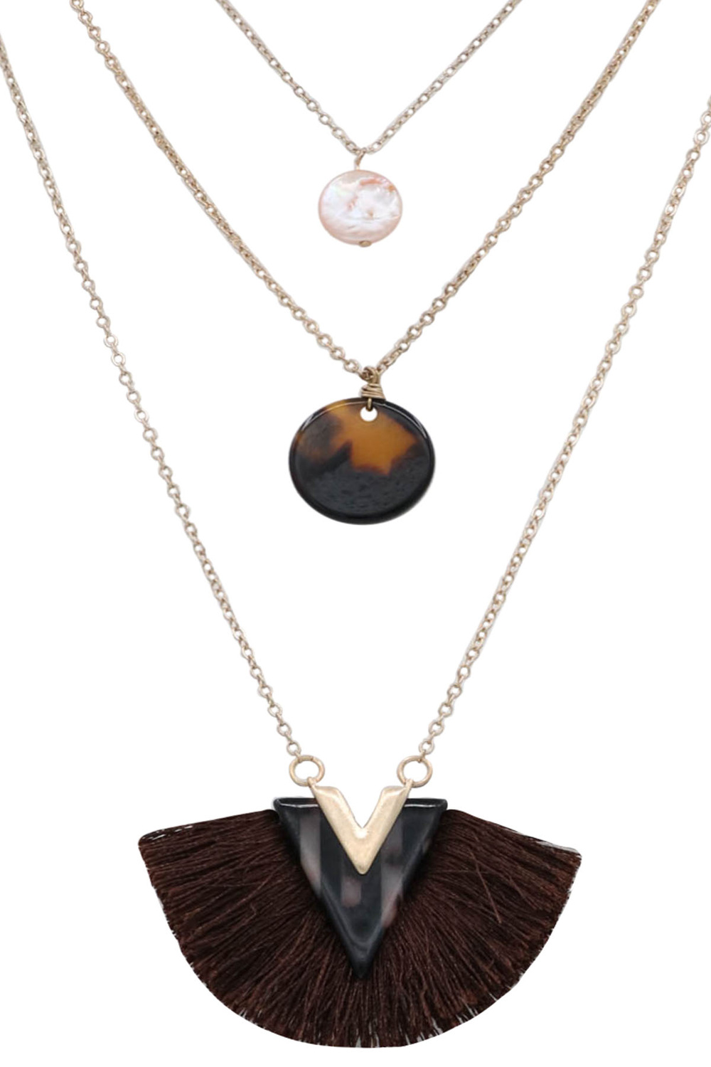- Metal layered tortoise tassle necklace