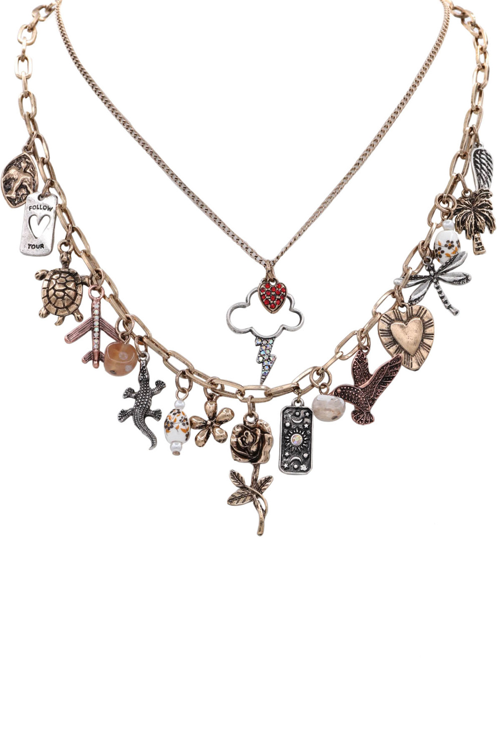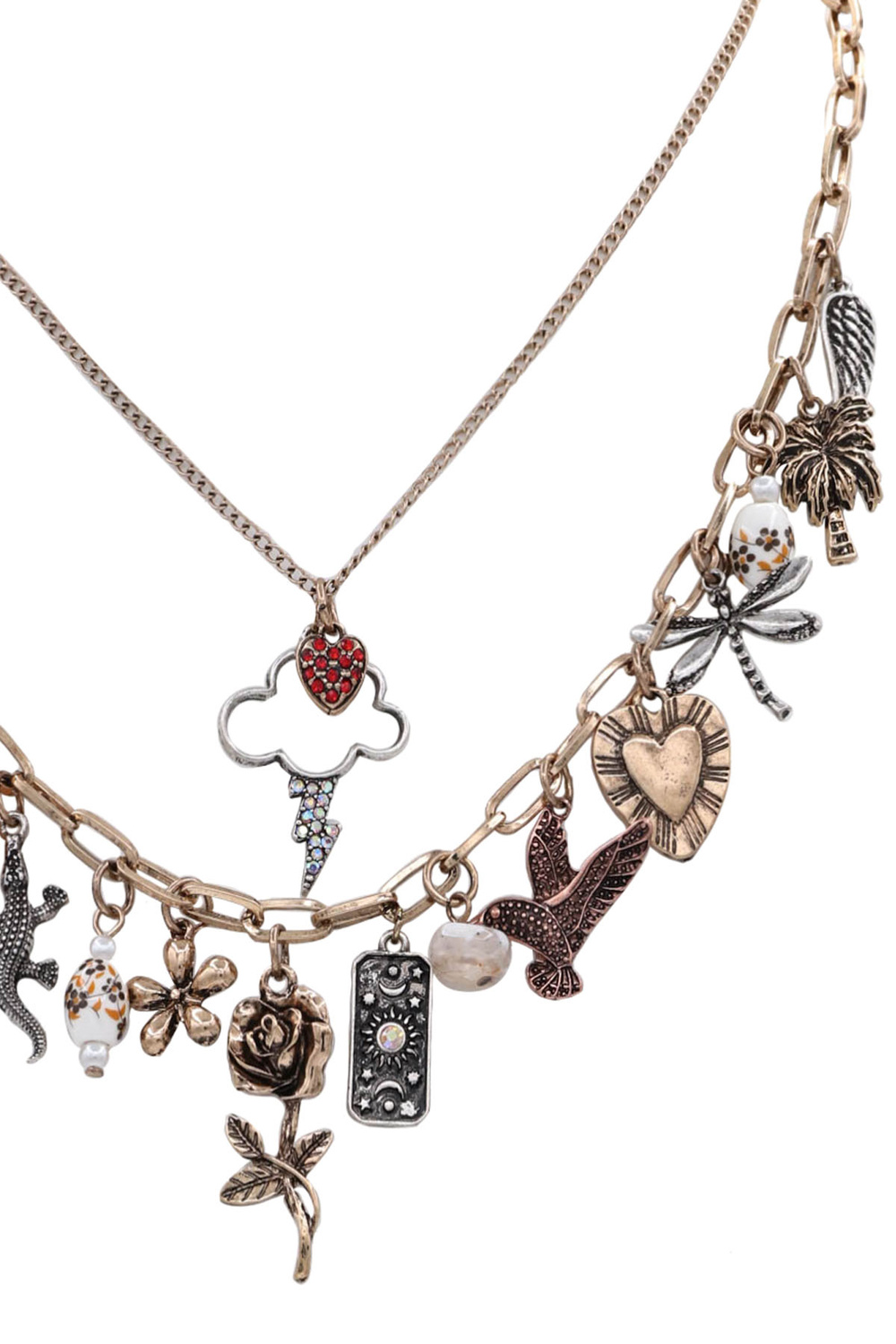 - Metal multi charm chain linked necklace