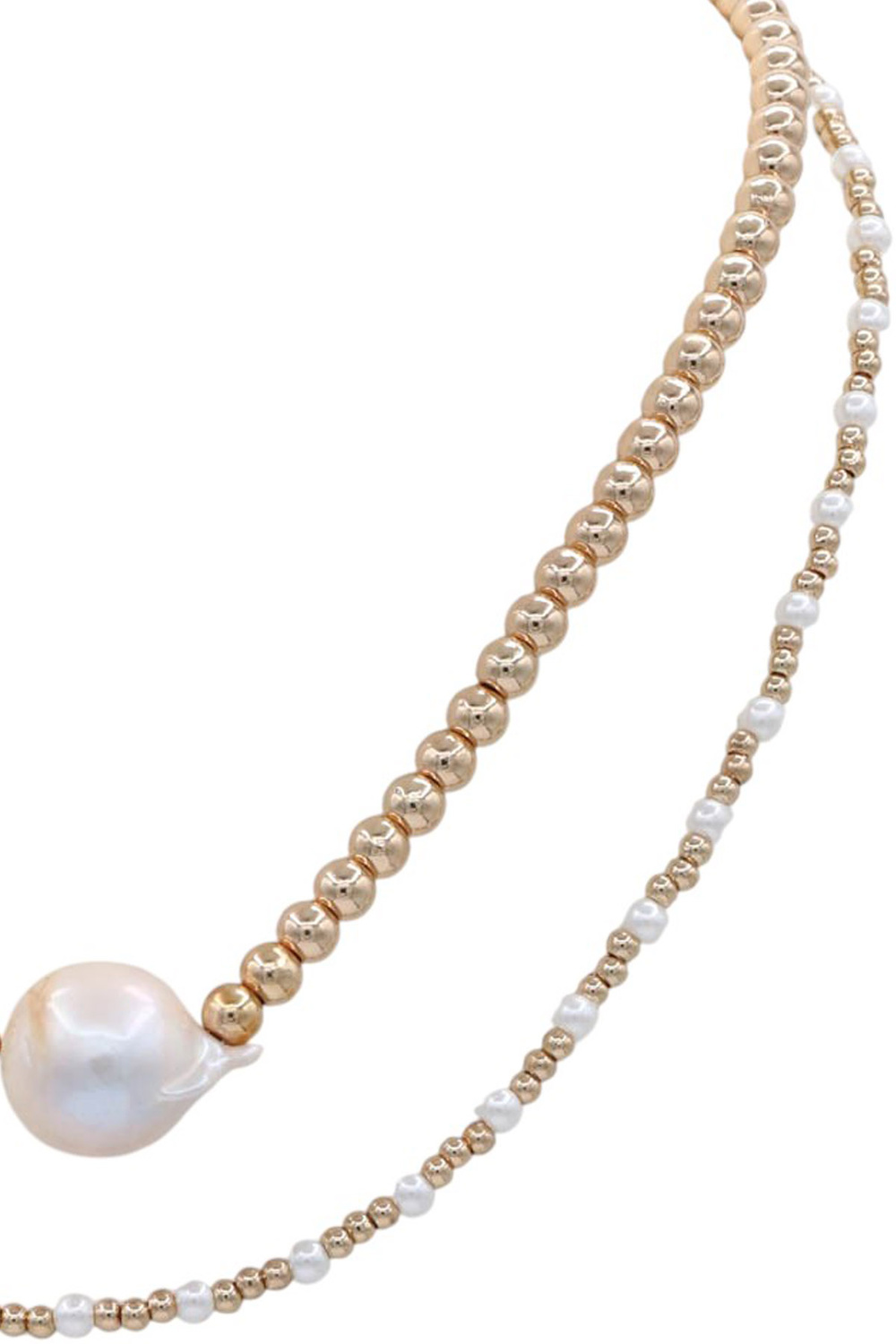 - This layered necklace showcases organic-shaped cream pearl pendant that create a beautifully natural and feminine style. Perfect for adding a touch of elegance to any outfit.