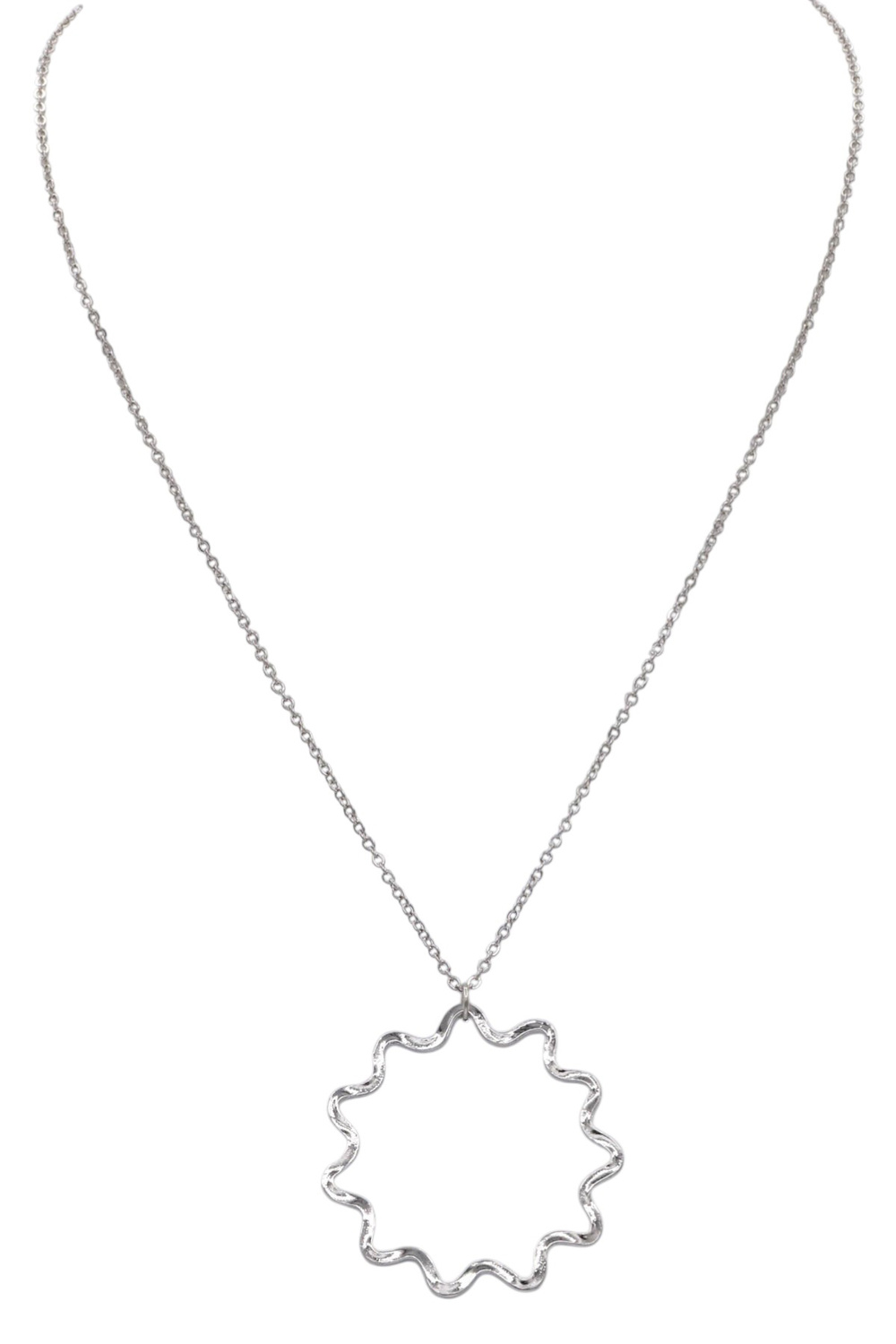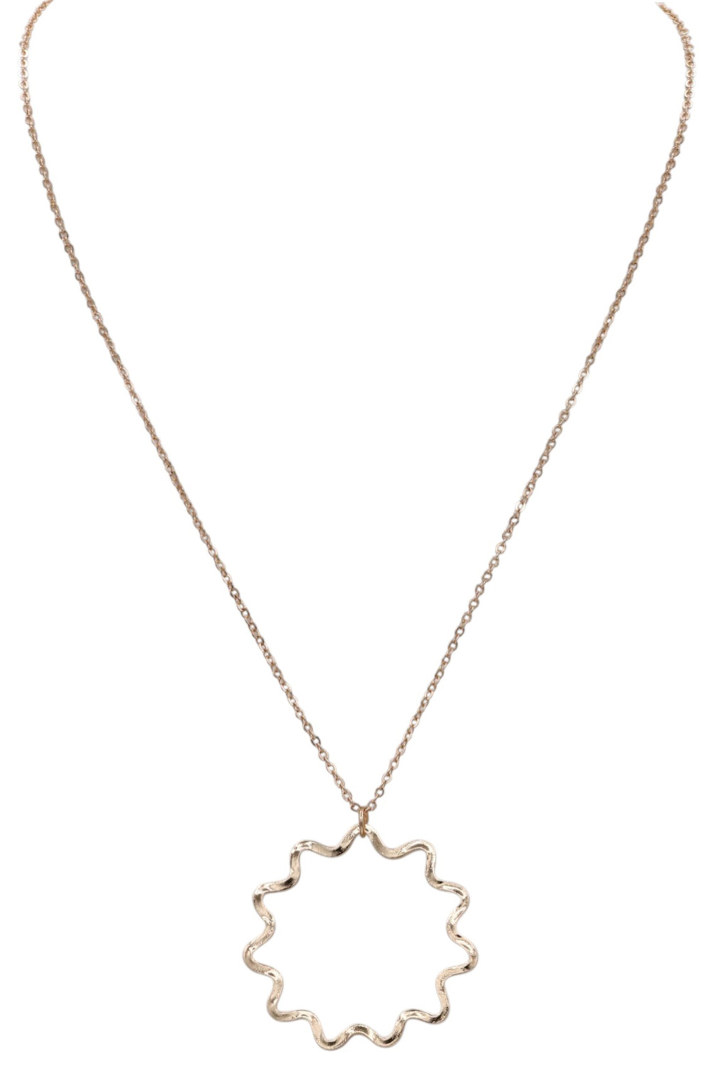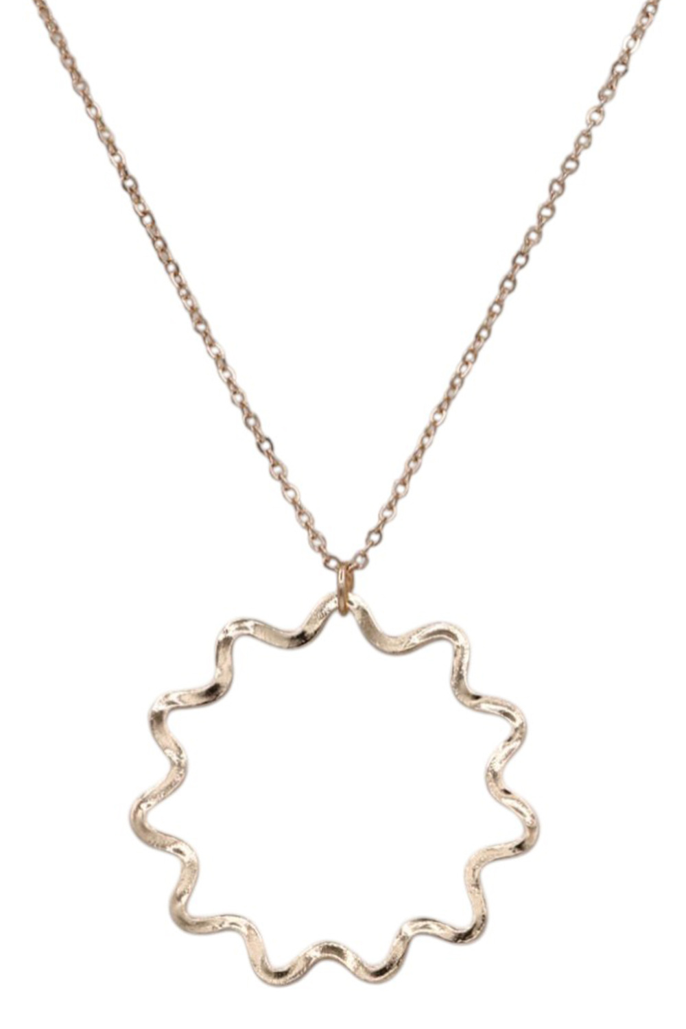 - Chic and radiant, this metal necklace showcases a sun pendant that adds a warm, celestial touch to any outfit. Perfect for layering or wearing solo.