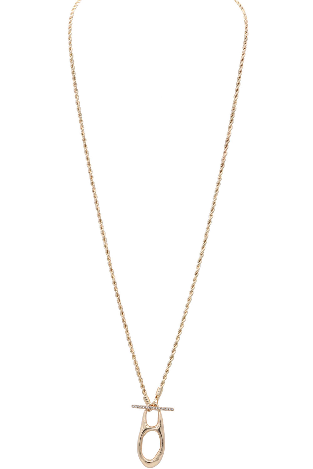- Featuring a twisted rope-style long chain and finished with a bold pendant and classic toggle clasp, this necklace brings texture and sophistication to any look.