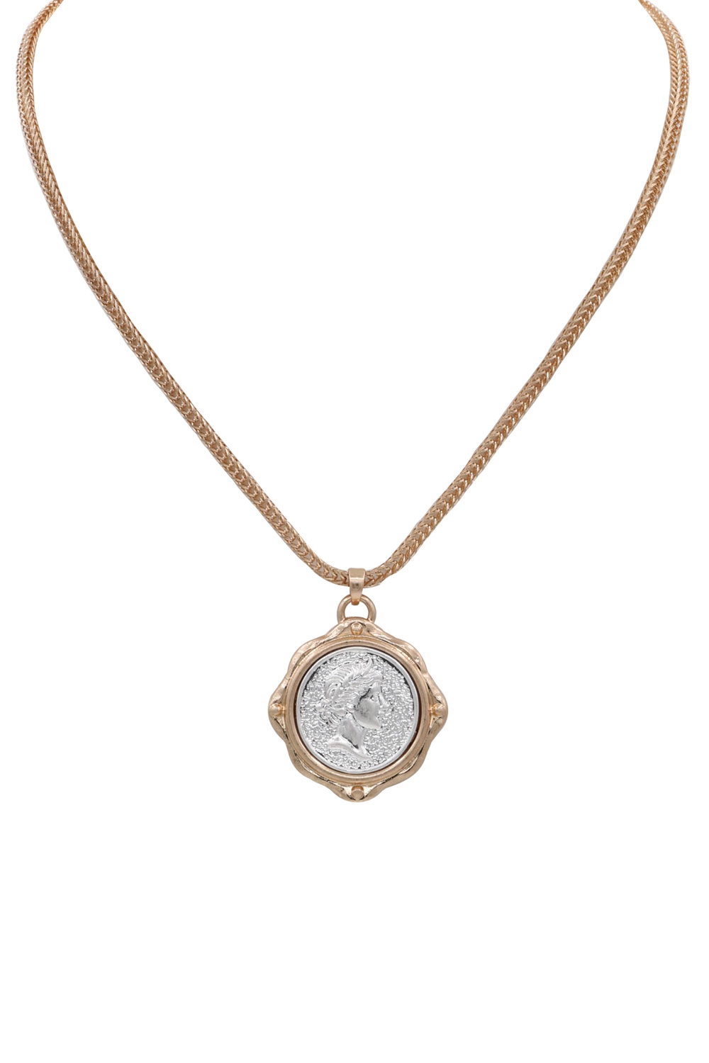 - A stylish necklace featuring layered two-tone chains accented with coin charms for a modern, chic look. Lightweight and versatile, it's perfect for layering or wearing solo to elevate everyday and dressy outfits.
