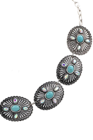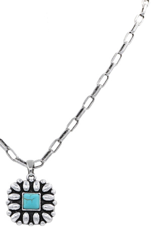 Western Charm Bull Skull & Cactus Fabric Necklace