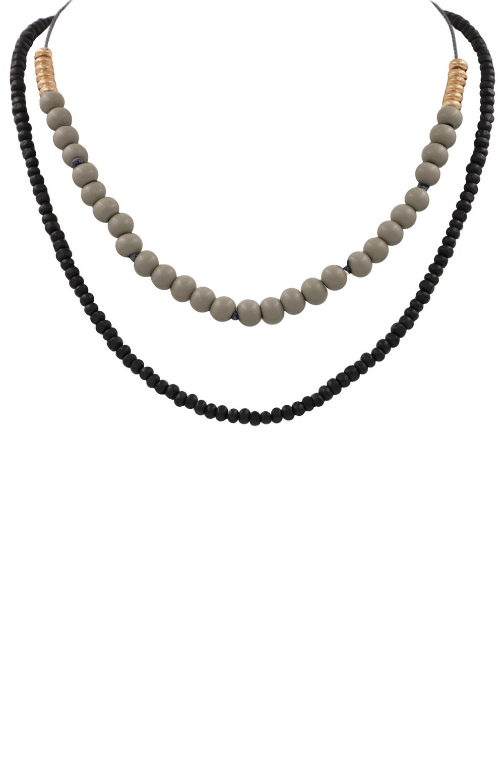 - Wood bead layered necklace