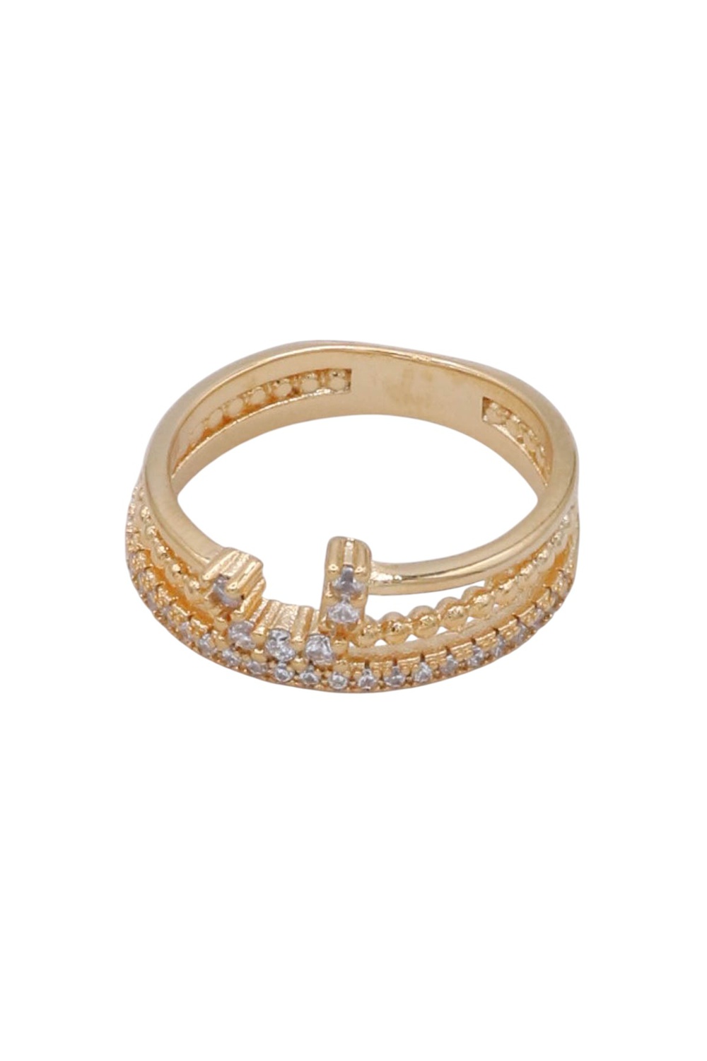 - This elegant brass ring features a layered band design highlighted with shimmering rhinestones and a rich gold dipped finish. Perfect for everyday glamour or special occasions.