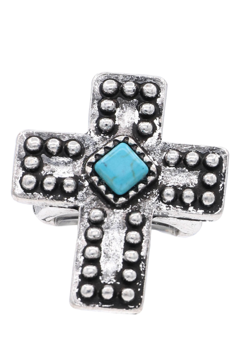 - Western cross turquoise cuff ring