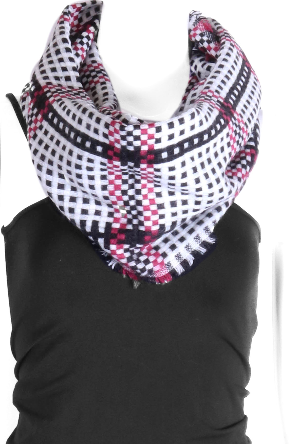 - Knit plaid infinity scarf