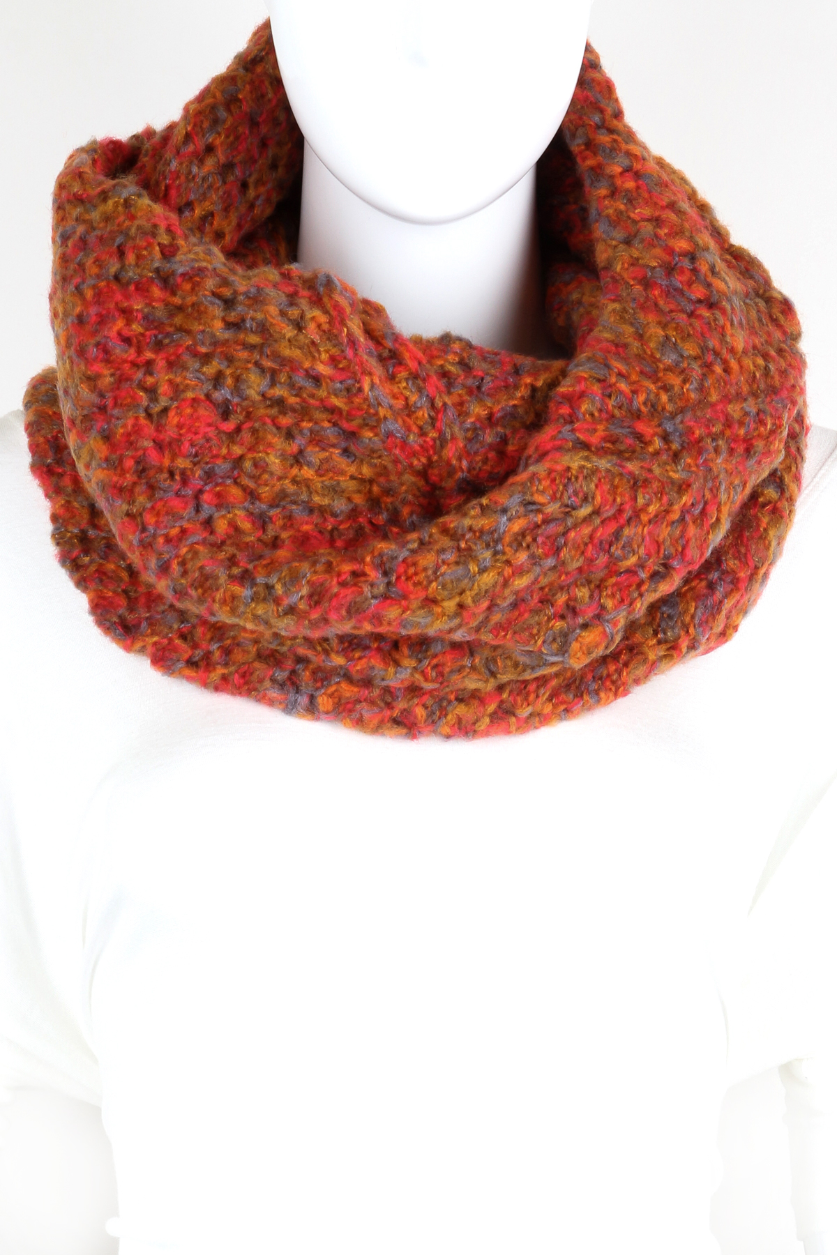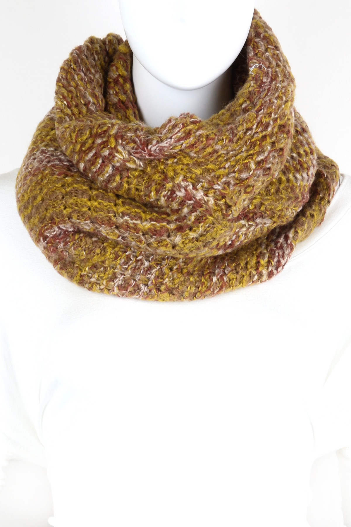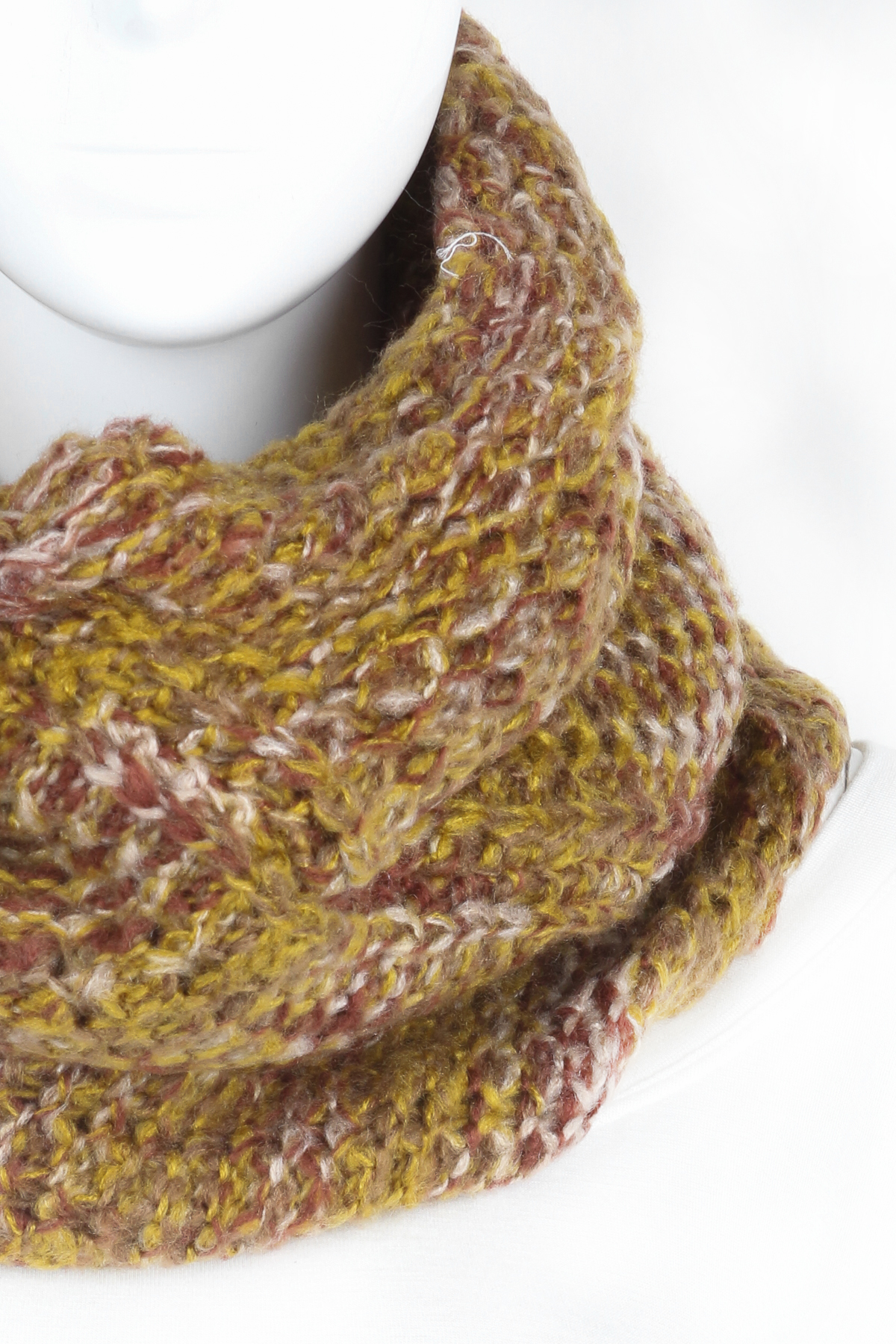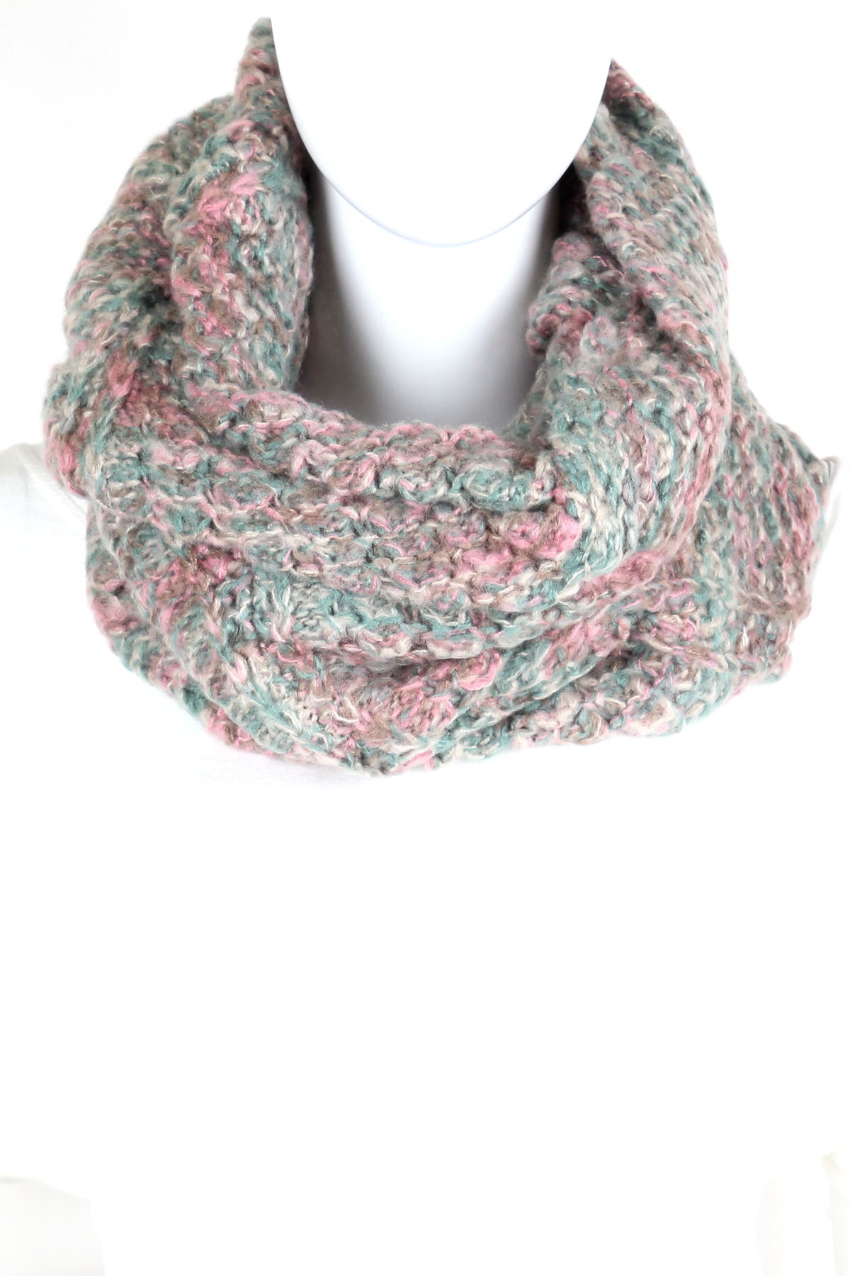 - Knitted scrunched infinity scarf.