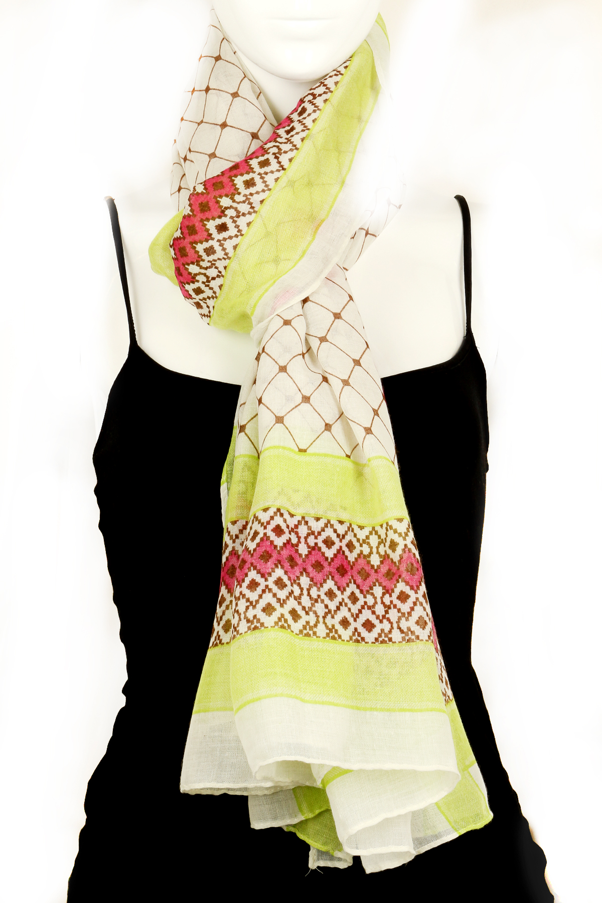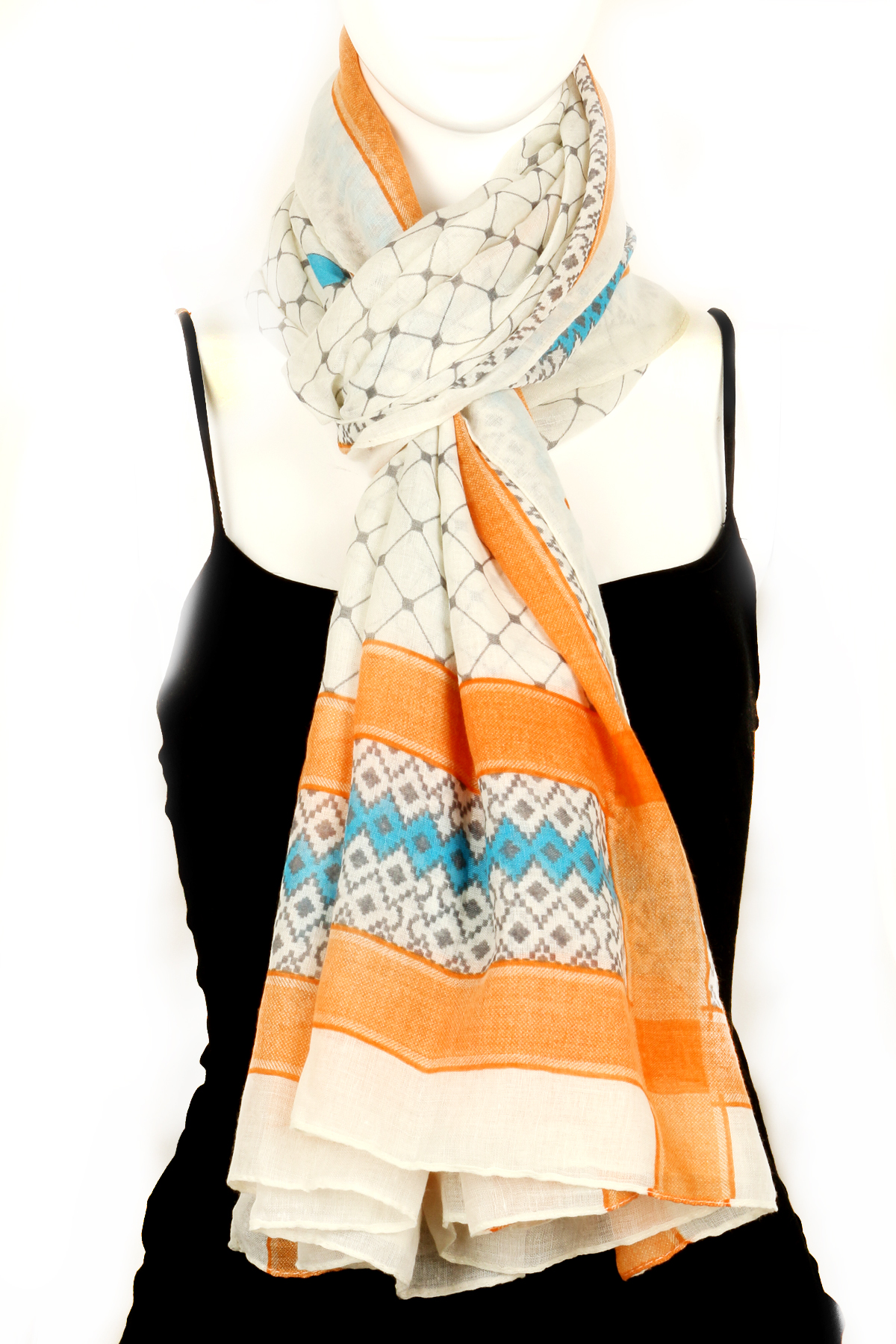 - Woven fish net design print scarf.