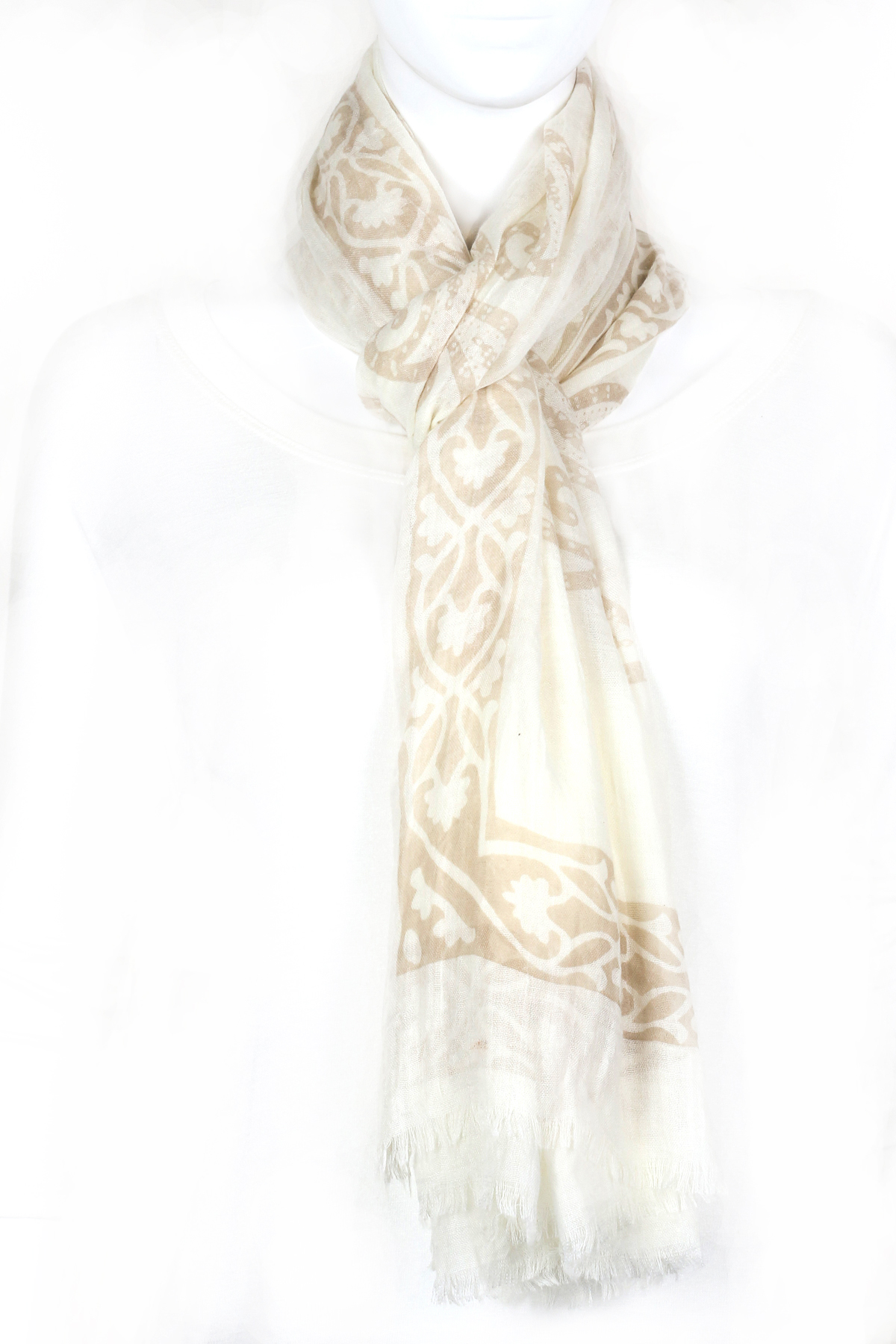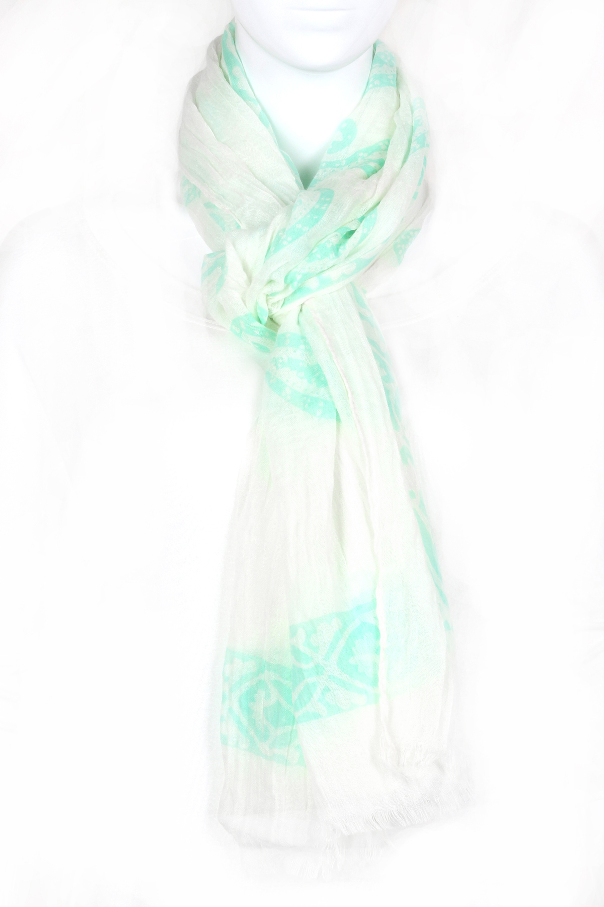 - Woven leaf fringe scarf.