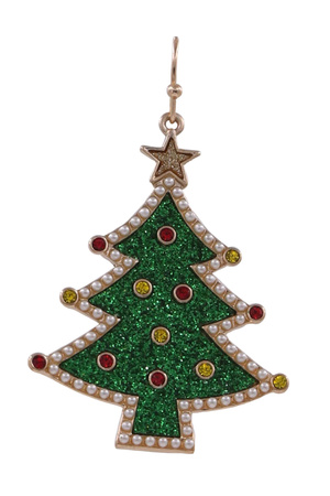 Metal Xmas Tree Cream Pearl Dangle Earrings