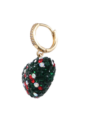 Gold Dipped Pave Heart Christmas Hoops Earrings