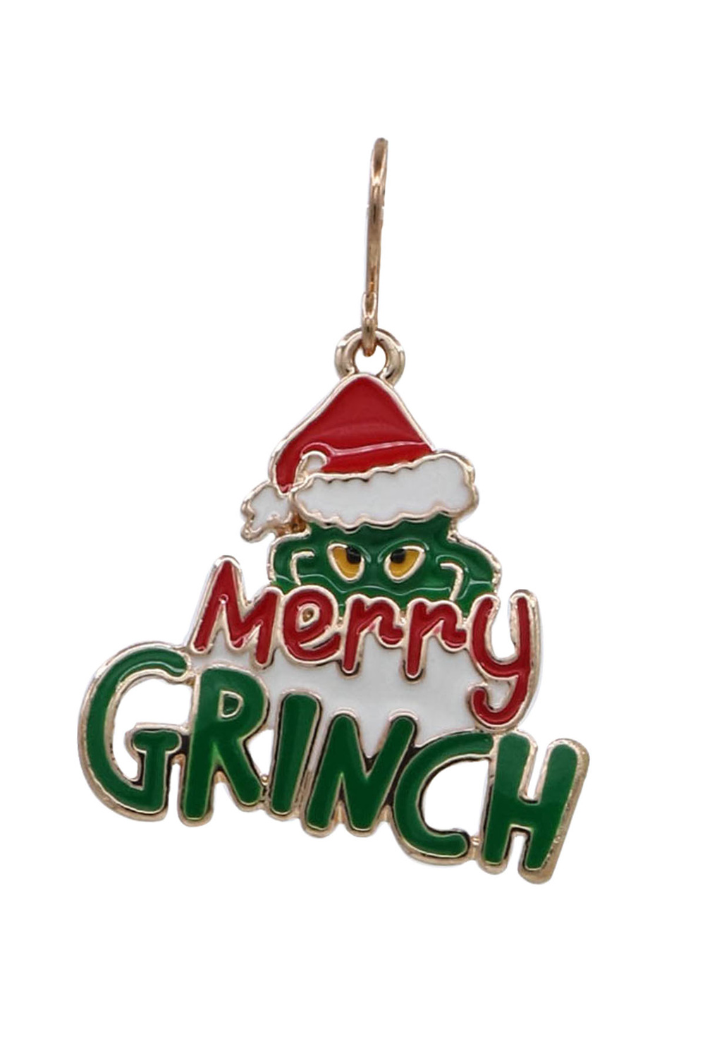 - Bright and cheerful earrings with a color-coated Grinch motif and Merry Christmas flair. A whimsical accessory for the holiday season.