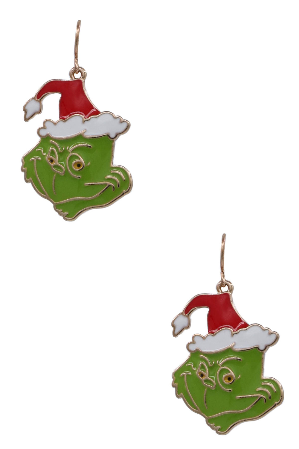 - Cheerful color-coated metal earrings featuring the iconic Grinch. Great for Christmas parties, gifting, or festive everyday wear.