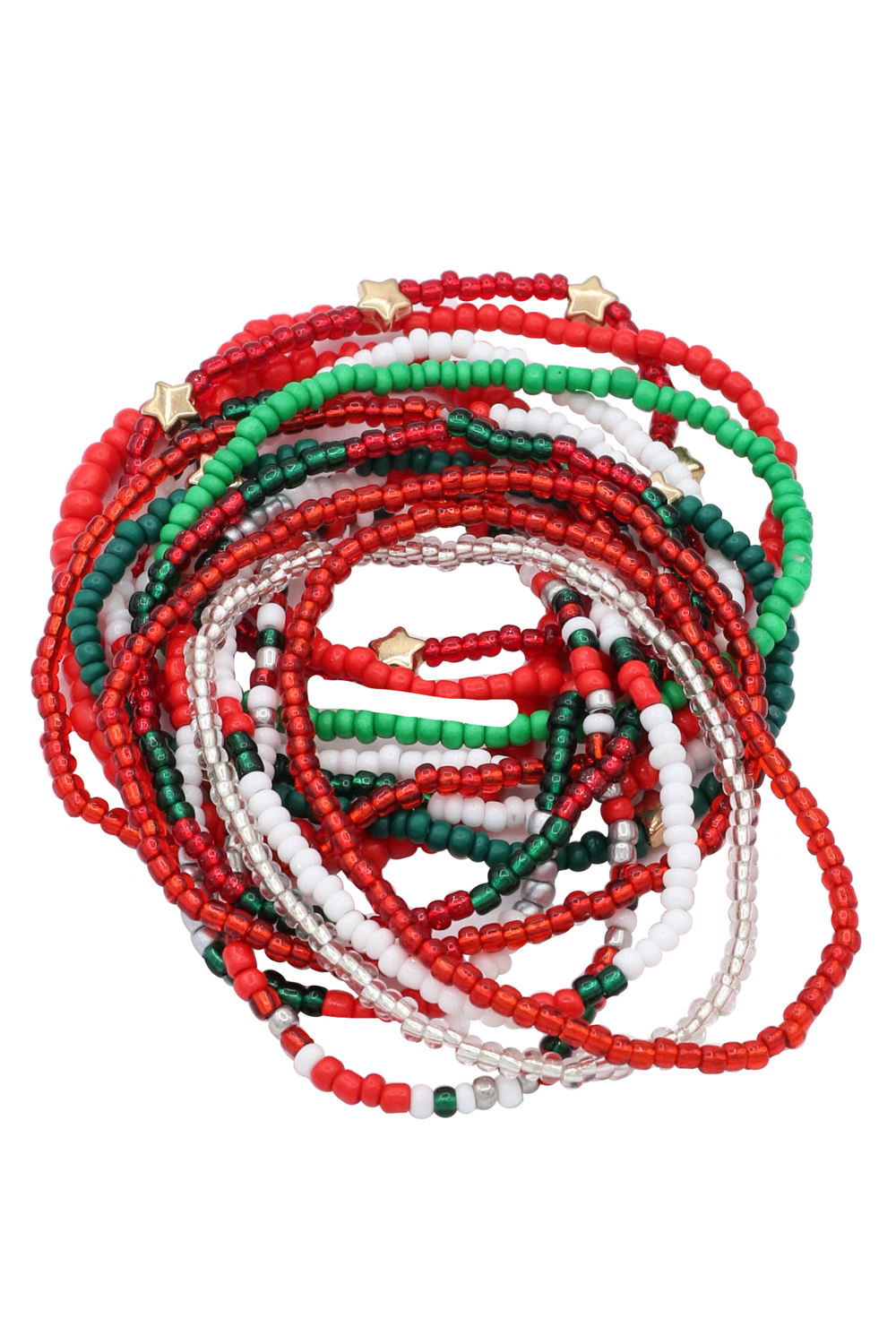 - Seed beaded star layered stretch bracelet set